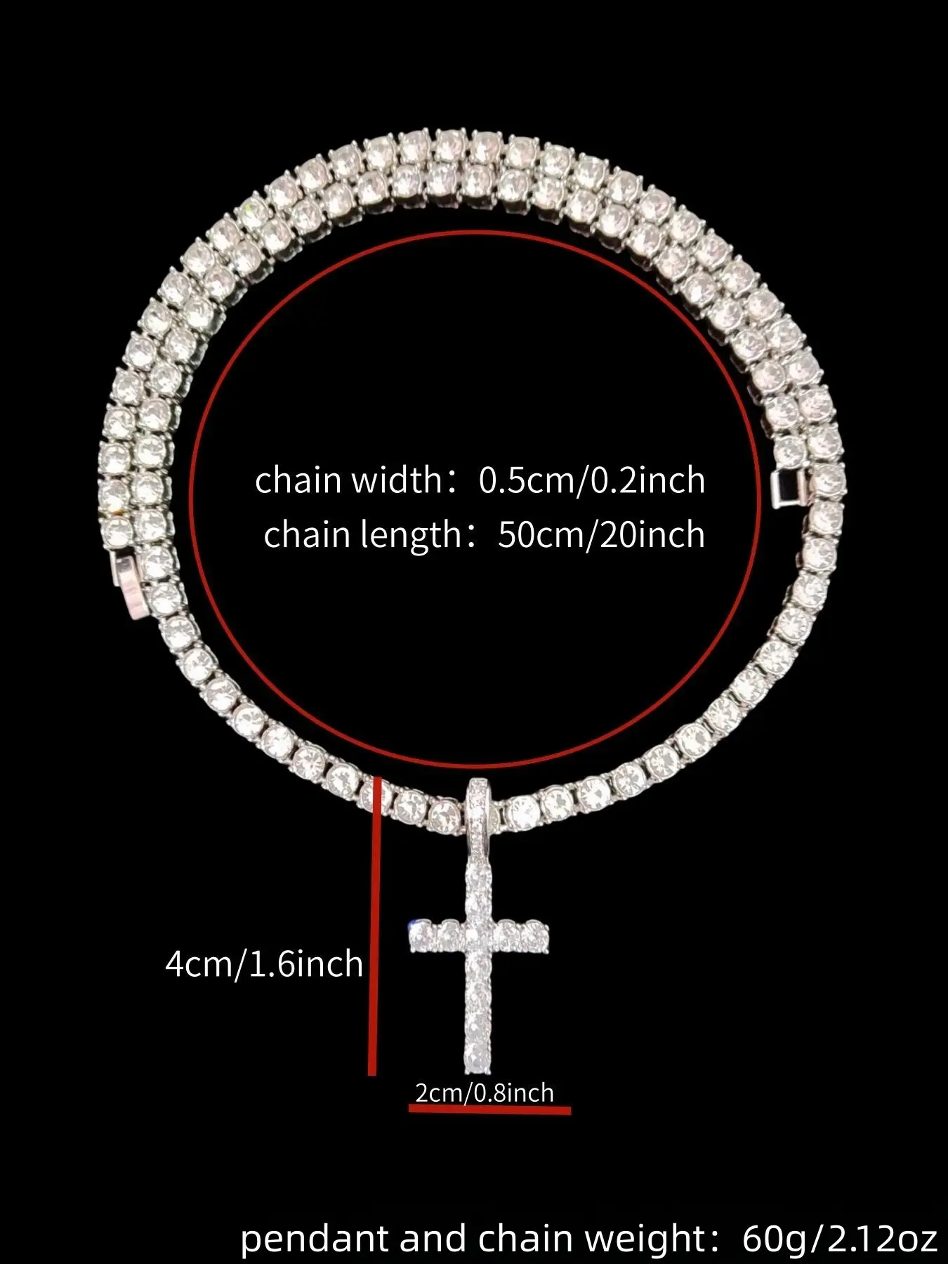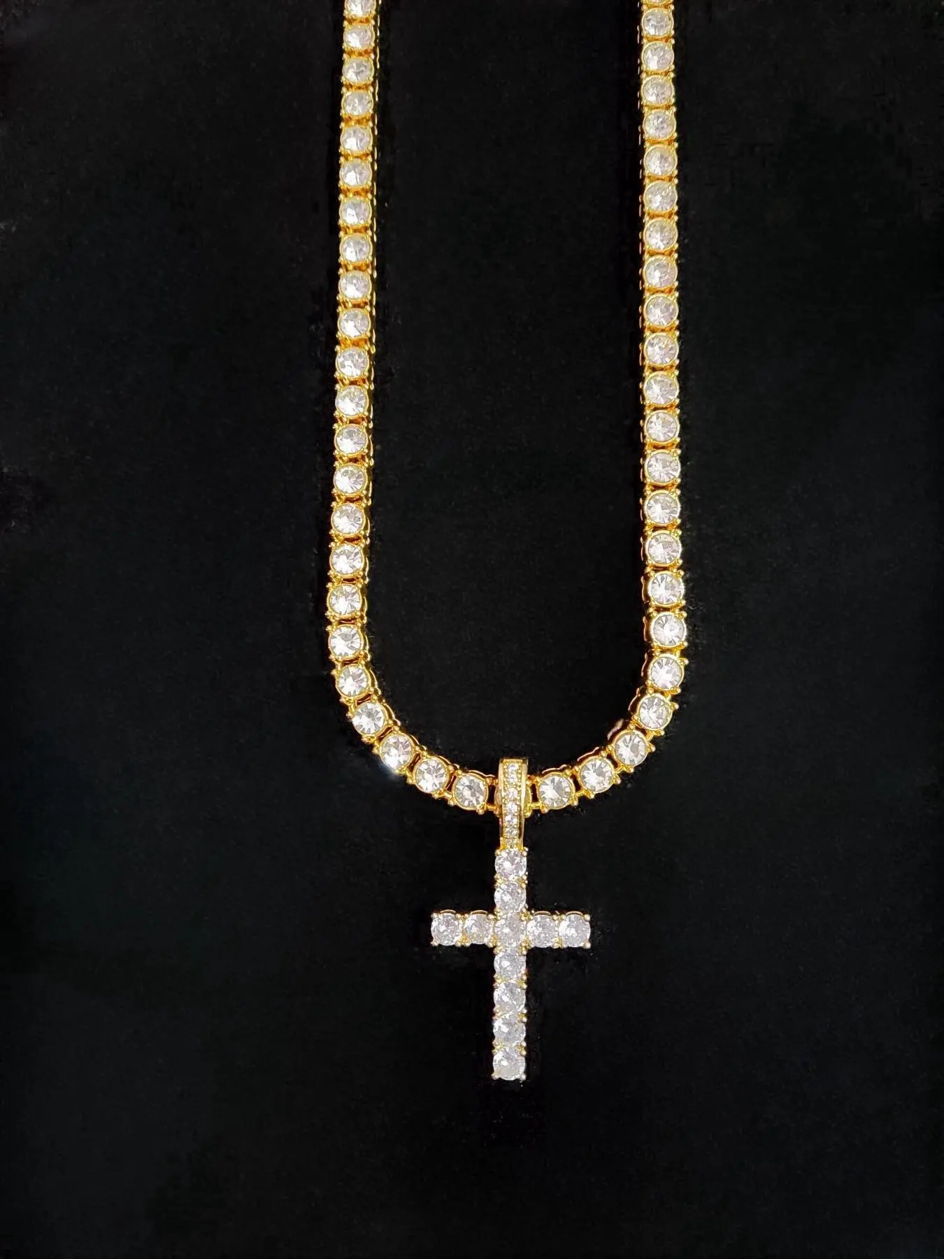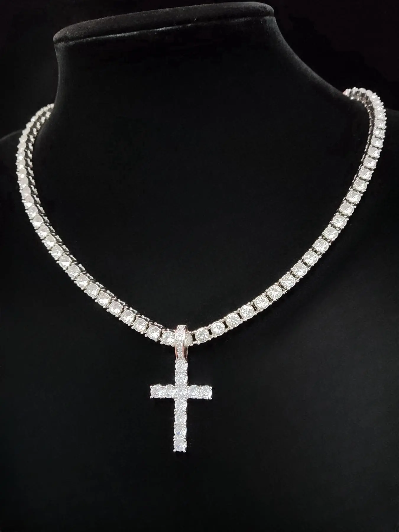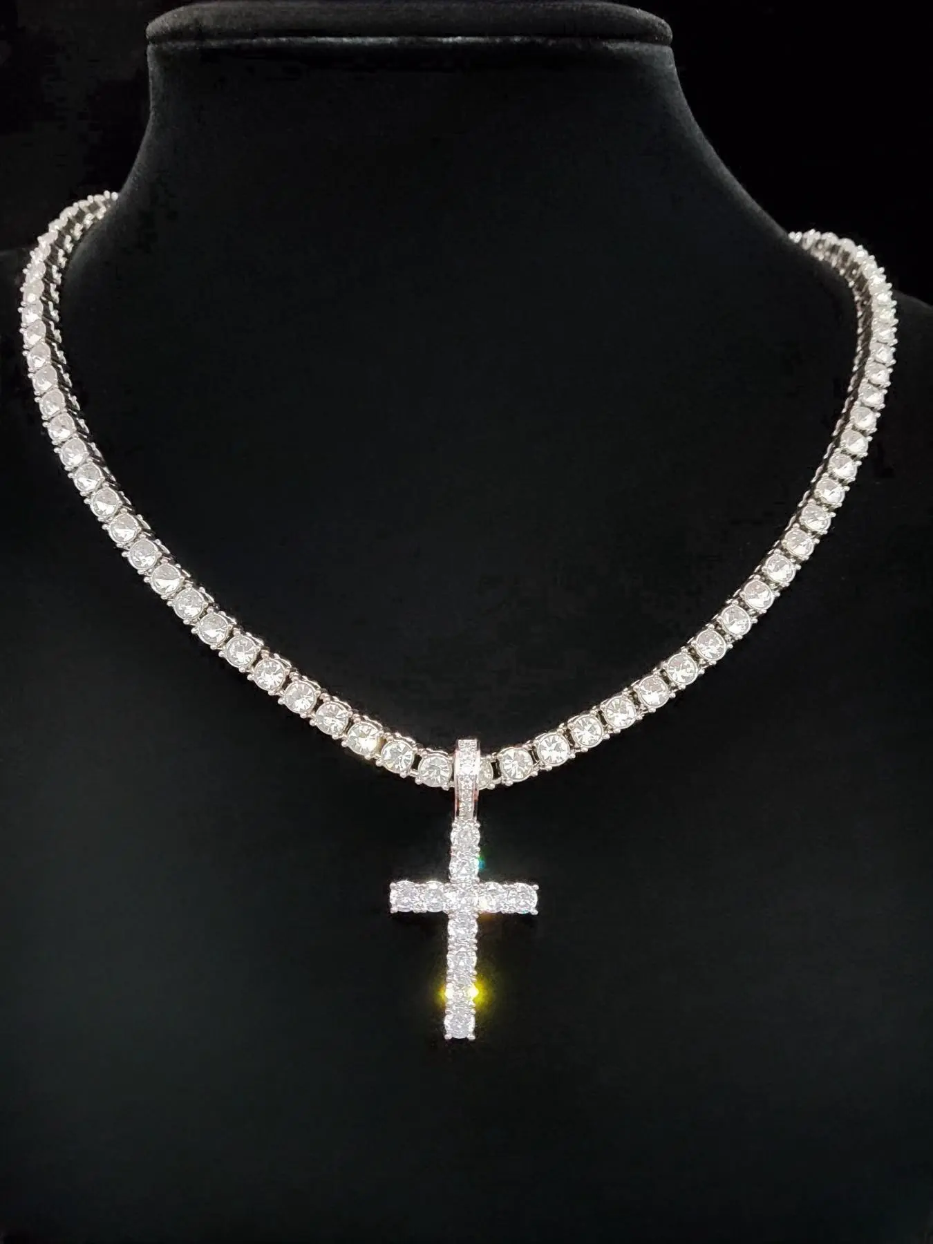 Artificial Zircon Inlaid Cross Pendant Necklace, Punk Style Necklace for Party, Daily Decor, Trendy All-match & Exquisite Hip Hop Jewelry for Birthday Gift, Zirconia Cross Pendant