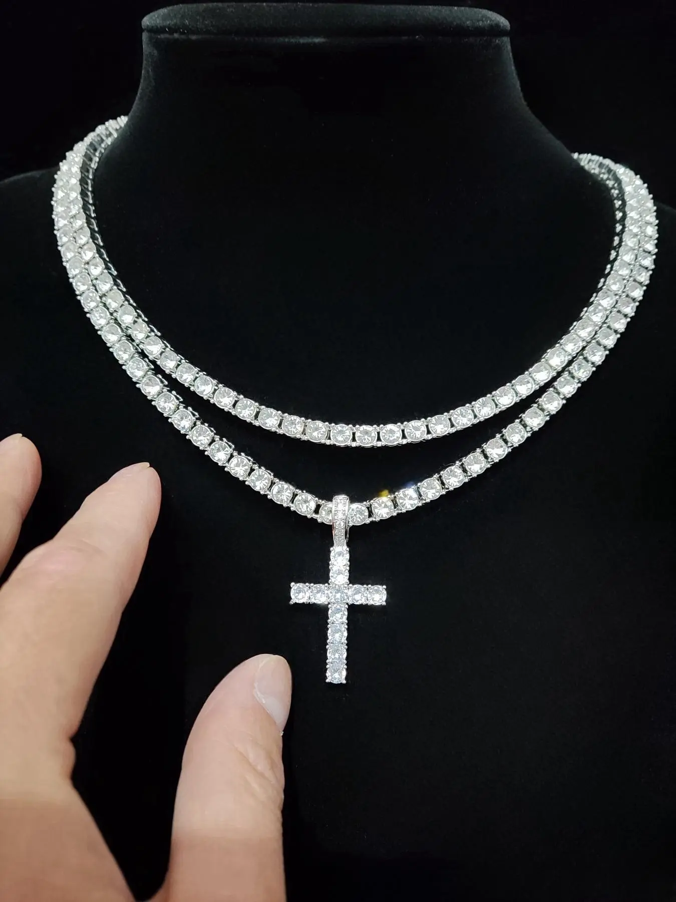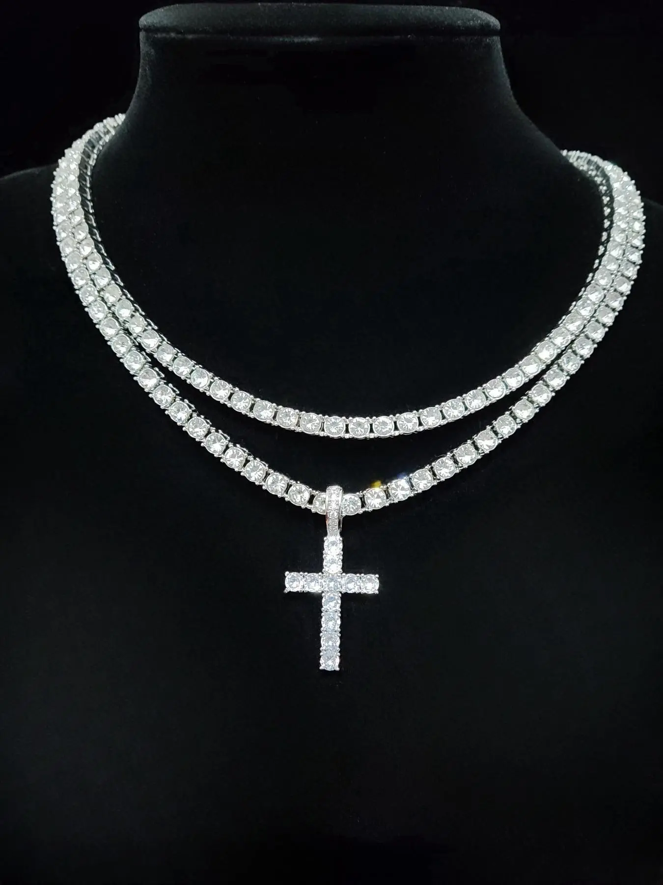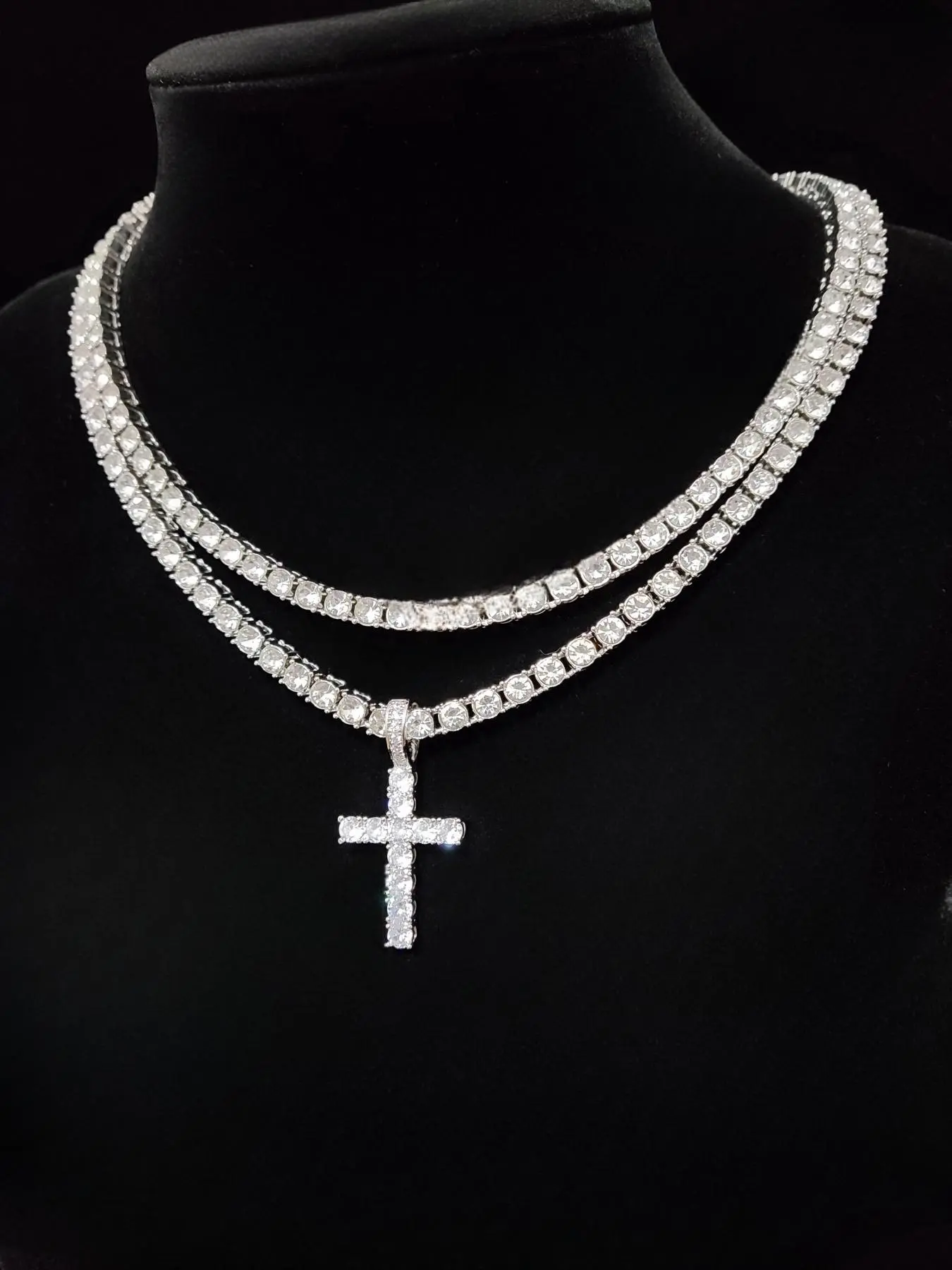 Luxury Artificial Zircon Cross Pendant Necklace for Girlfriend, Rhinestone Cross Necklace, Elegant Rhinestone Necklace, Streetwear Punk Hip Hop Matching Jewelry for Party, Daily Clothing Decor for Girl, Cuban Cross Necklace