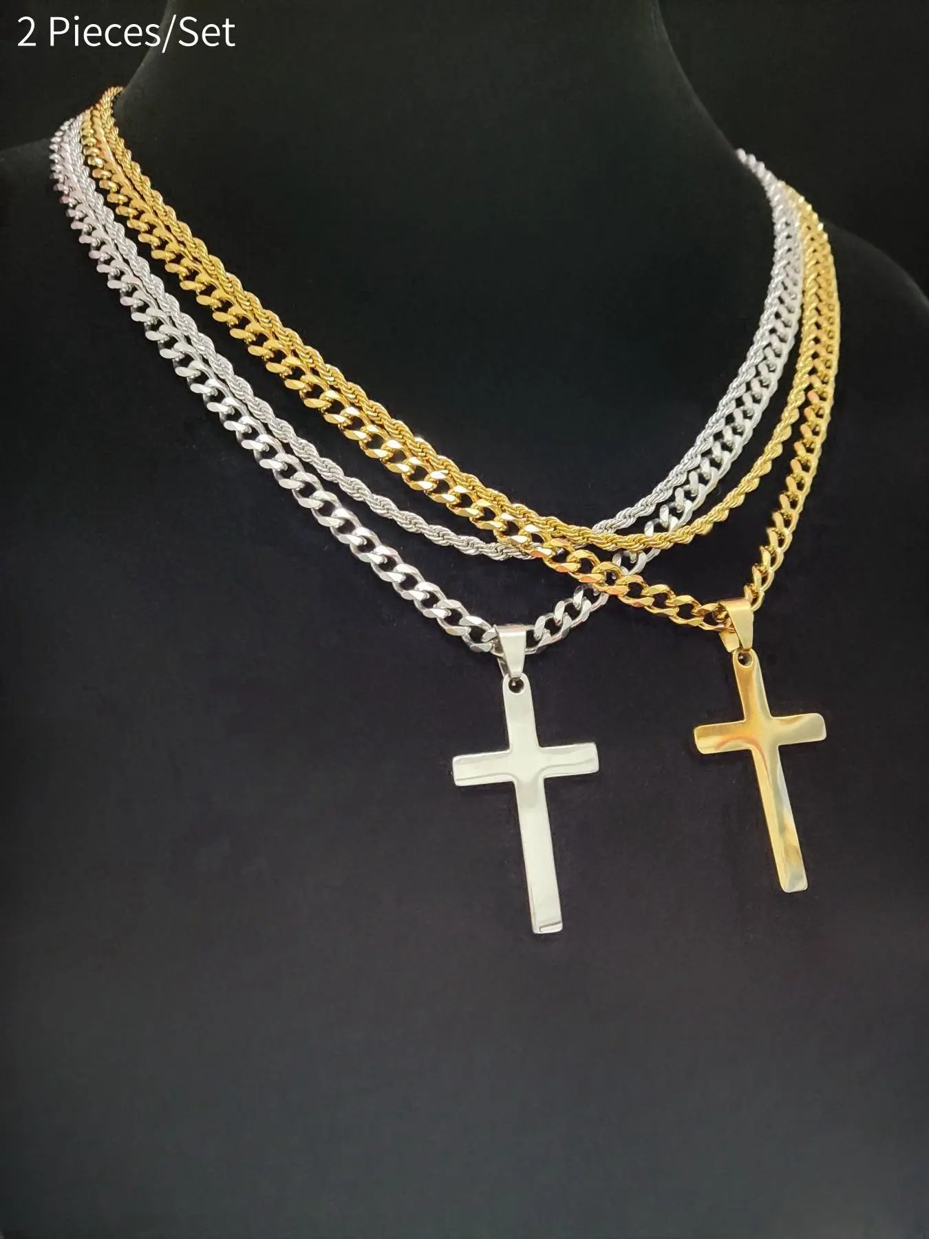 Cross Pendant & Cuban Chain Necklace Set for Men & Women, Stainless Steel Jewelry for Party, Daily Clothing Decor, Trendy All-match & Exquisite Jewelry for Birthday Gift