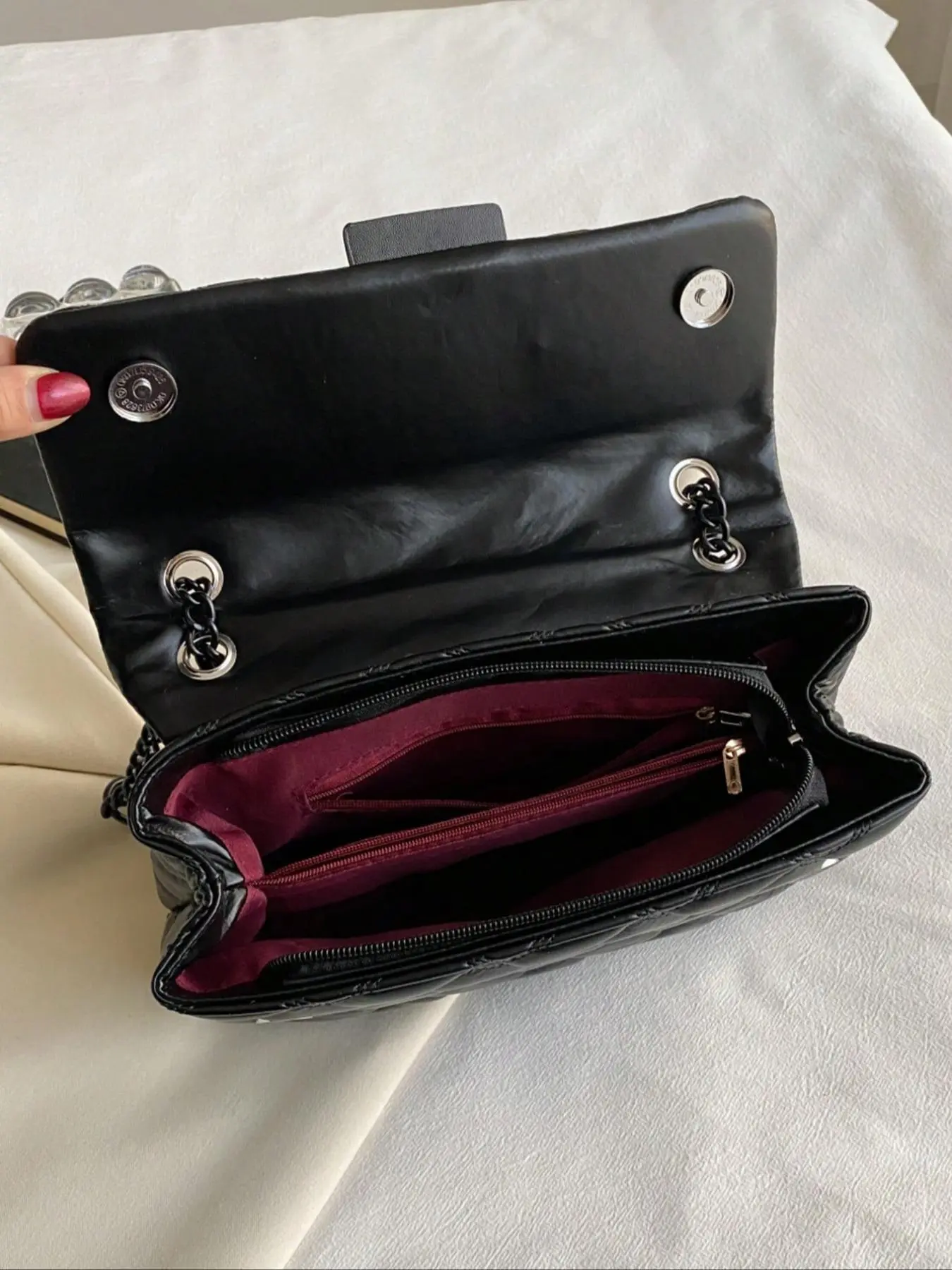 I recently bought this black pocketbook with a chain link strap, and I’m honestly in love with it! The design is chic and minimal, making it the perfect accessory for both casual days and dressy nights out.