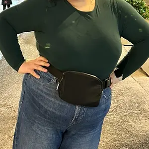 Really love this bag lots of compartments and it’s small enough to be big enough if that makes sense the longer strap is perfect length. I would like it to extend just a little bit more, but still fits comfortably I also love the fact that it comes with the clasp and you can make it be a fanny pack