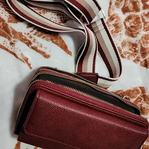 Absolutely love this little purse. I got three different colors and gave one as a gift. Small enough to carry what you need and the little purse is a plus. I highly recommend it. Good material and sturdy.