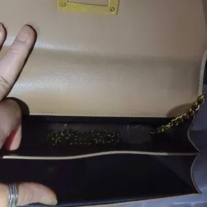 Es una cartera clásica, elegante y la cadena dorada la hace ver súper chic. Tiene muy buena calidad y con capacidad para tu teléfono, maquillaje etc. Me encantó.