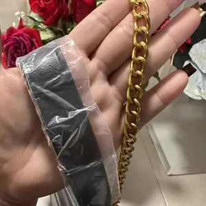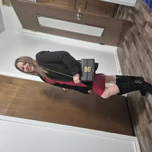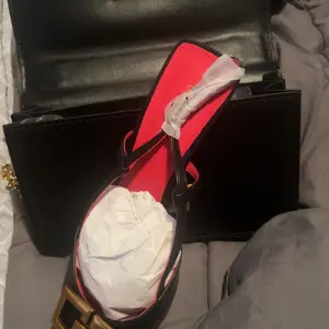 I AM SO OBSESSED. And this comes with matching kitten heels! Measurements are in pictures. Perfect size for the basics. Can use short as a short strap or as a cross body. It's a single chain. Clasp is also stable.
