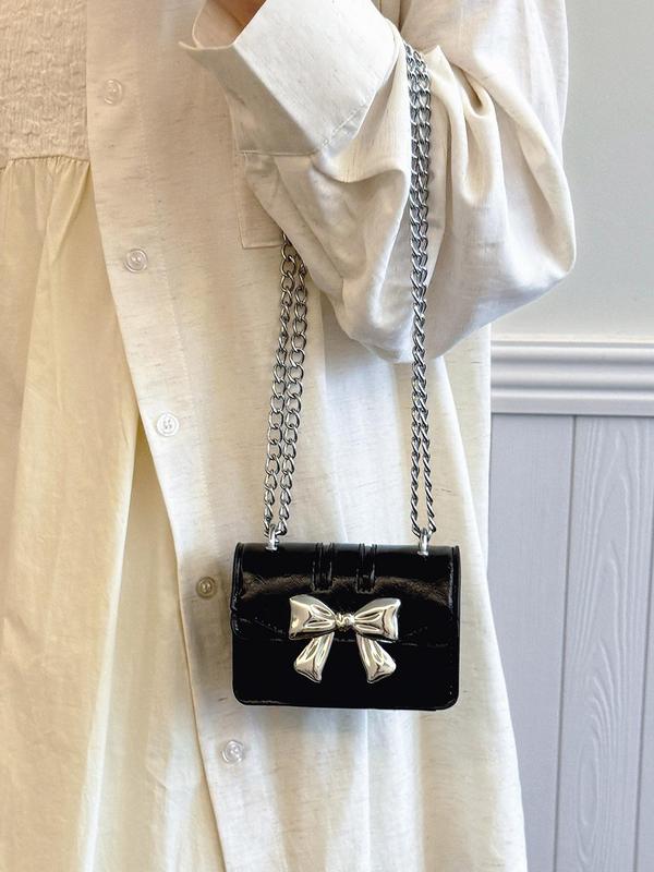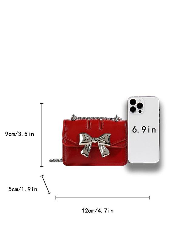 5. Women's Cute Bowknot Decor Crossbody Bag, Fashionable PU Leather Chain Strap Shoulder Bag for Daily Used, Casual Trendy Versatile High-quality Daily Commuting Bag, Fashionable Versatile Purse