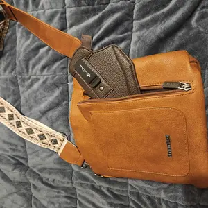 This purse is every thing I wanted I’m able to carry my bang with me and feel secure while doing so and the holster it comes with is perfect for small compact9 or short22 I’m very very happy the leather is great quality