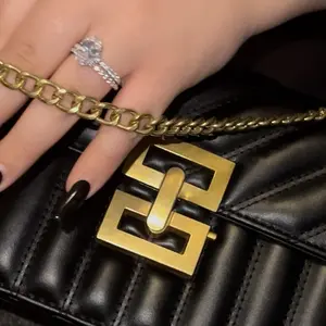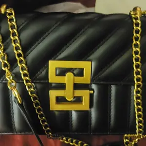 Muy elegante,buen material y super comoda tambien tiene una cadena color oro .