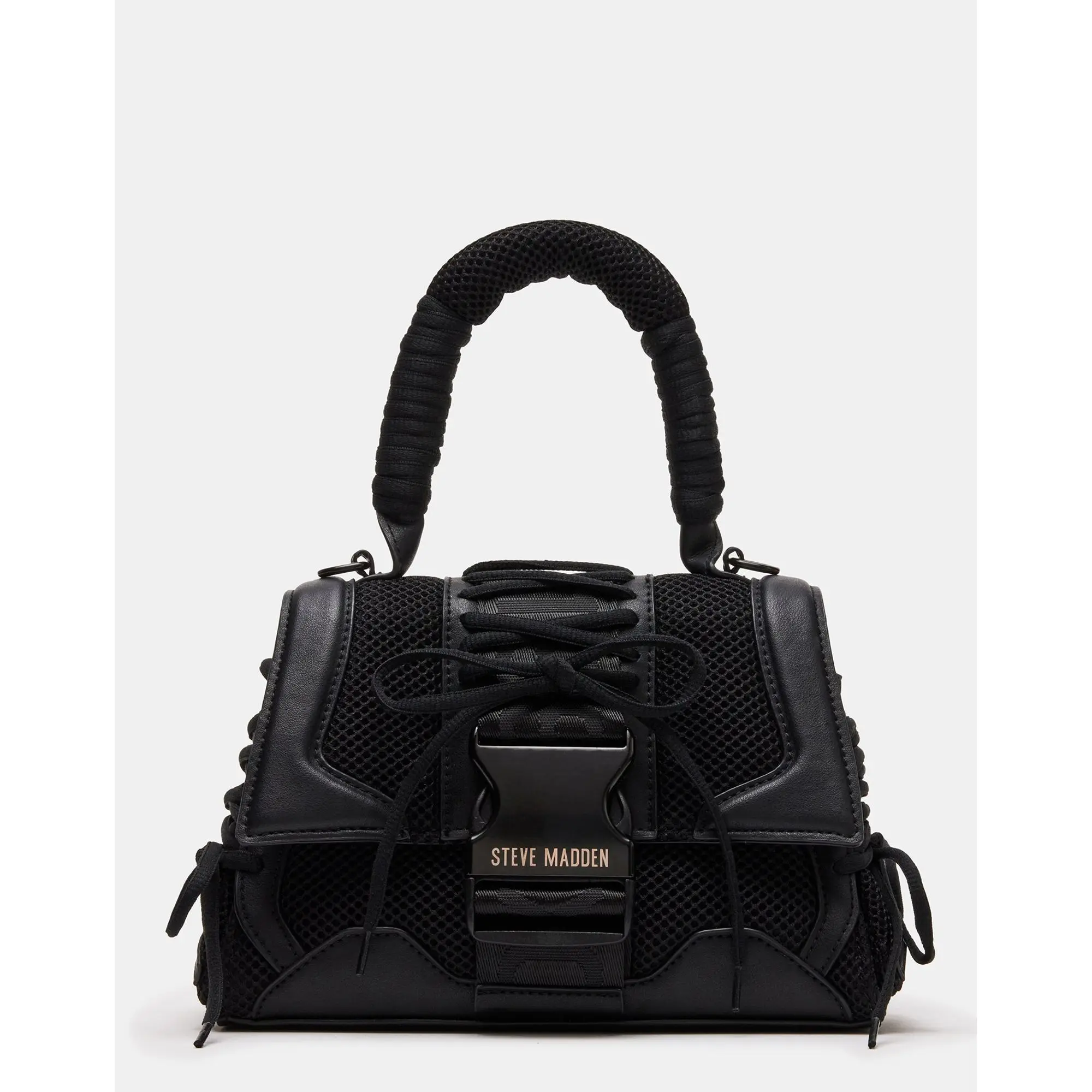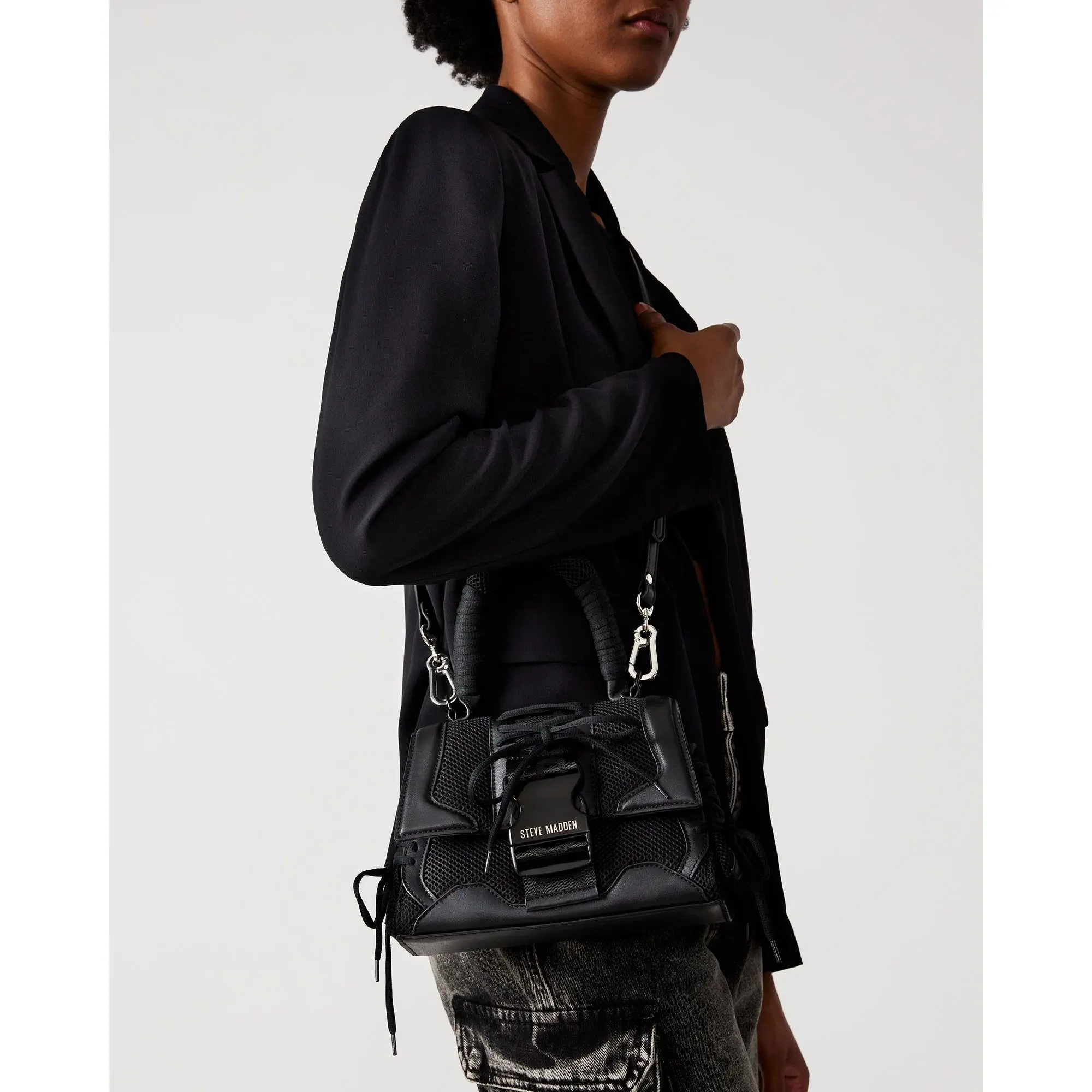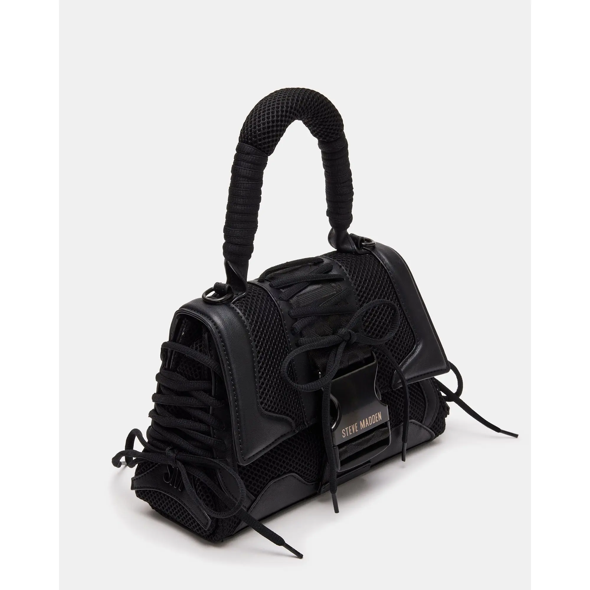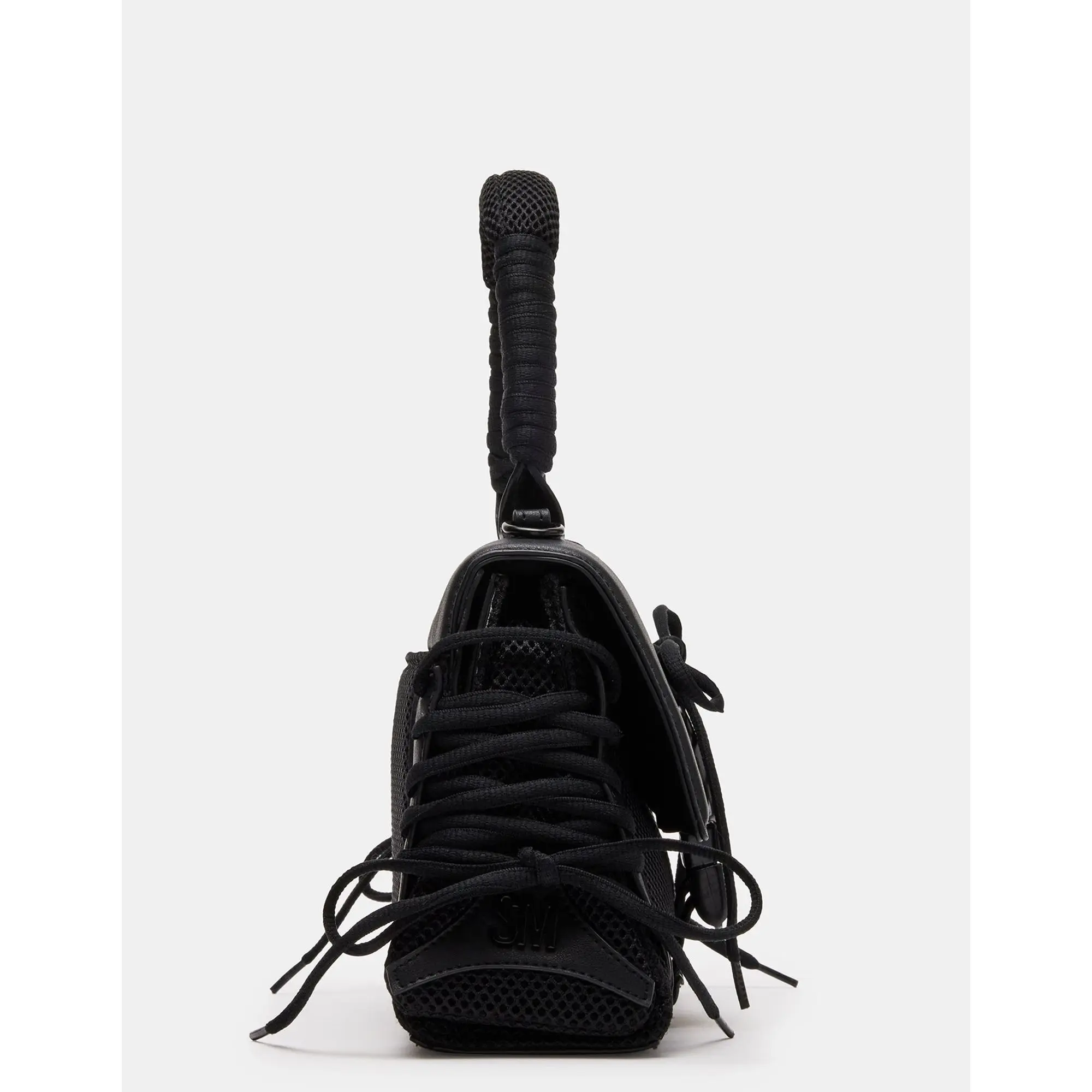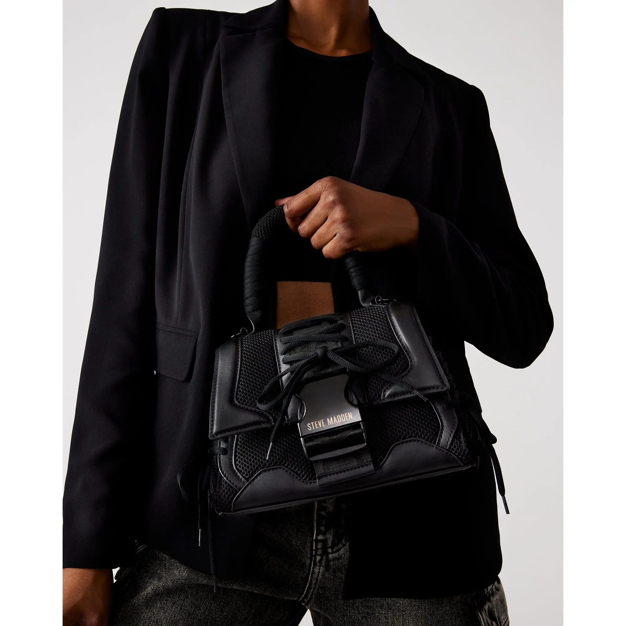 The DIEGO bag is a structured trapezoid bag with athletic-inspired details like mesh overlay panels, sneaker style lacing, and an oversized quick release buckle closure.