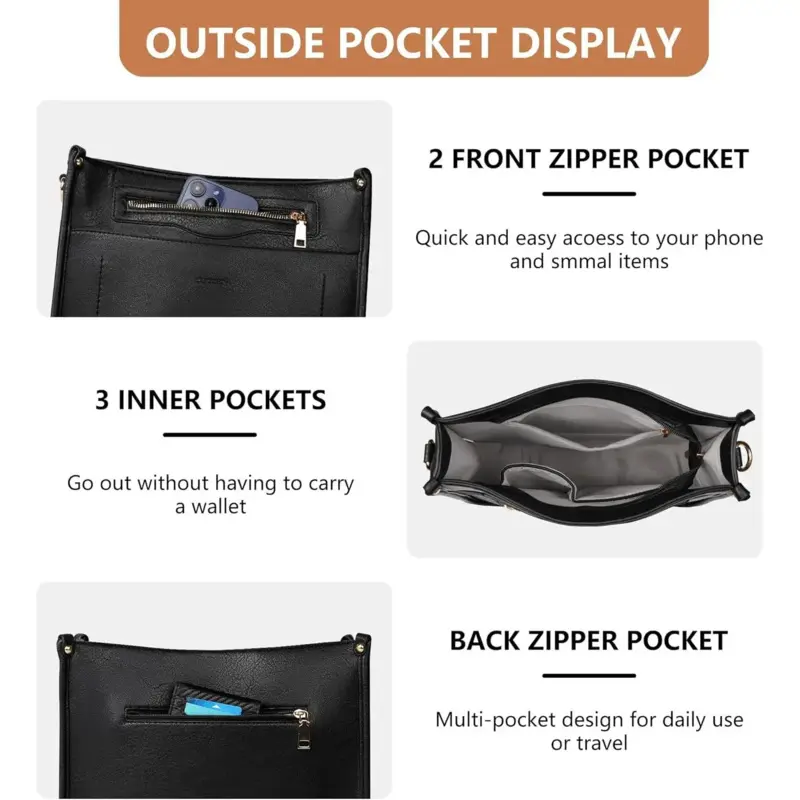 5. Crossbody Bags for Women Crossbody Purses for Women Hobo Bag Shoulder Bag Handbags with Guitar Strap-7 Pockets