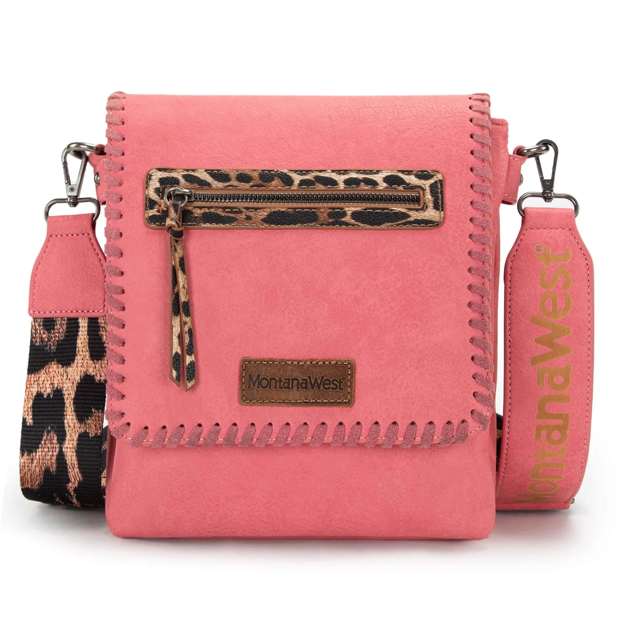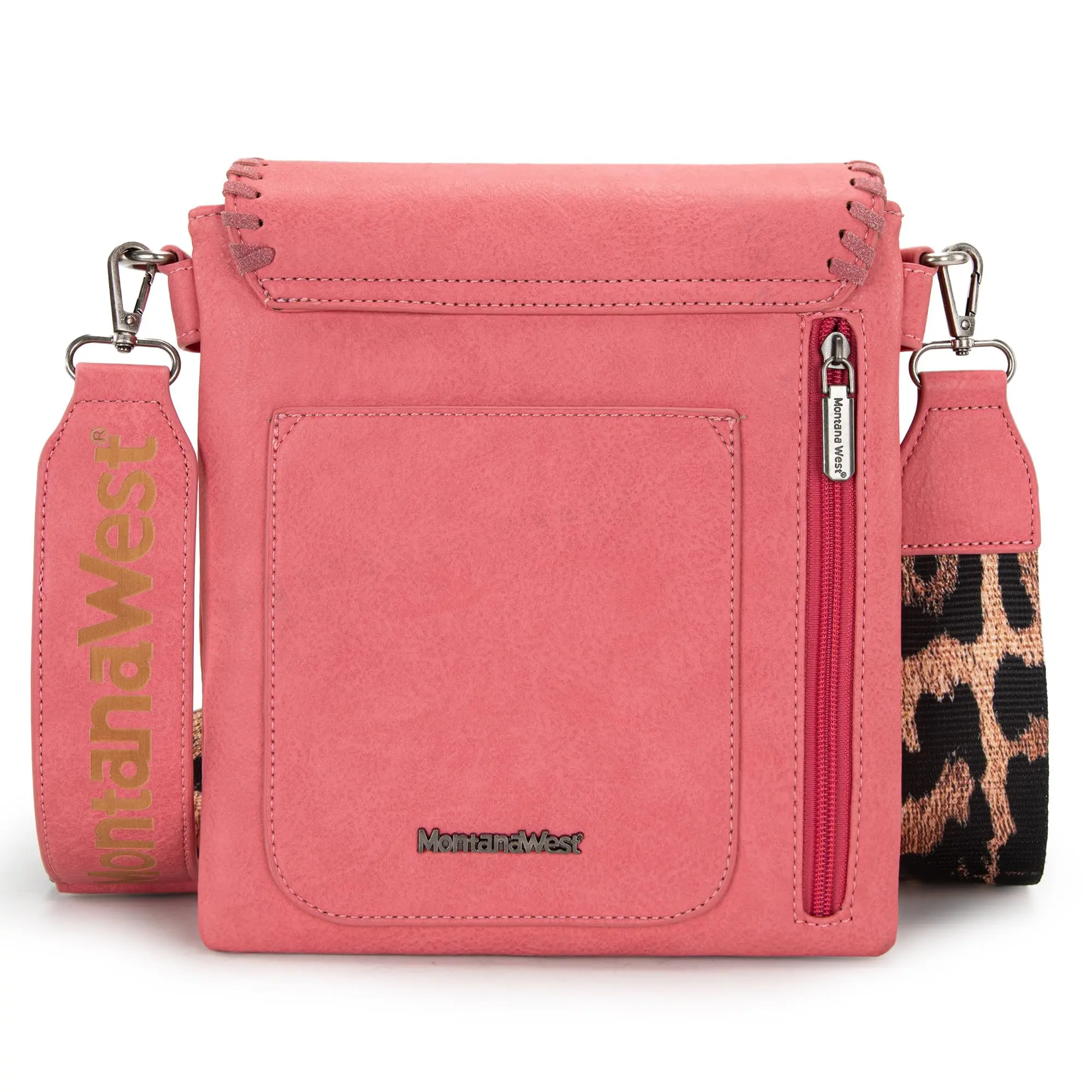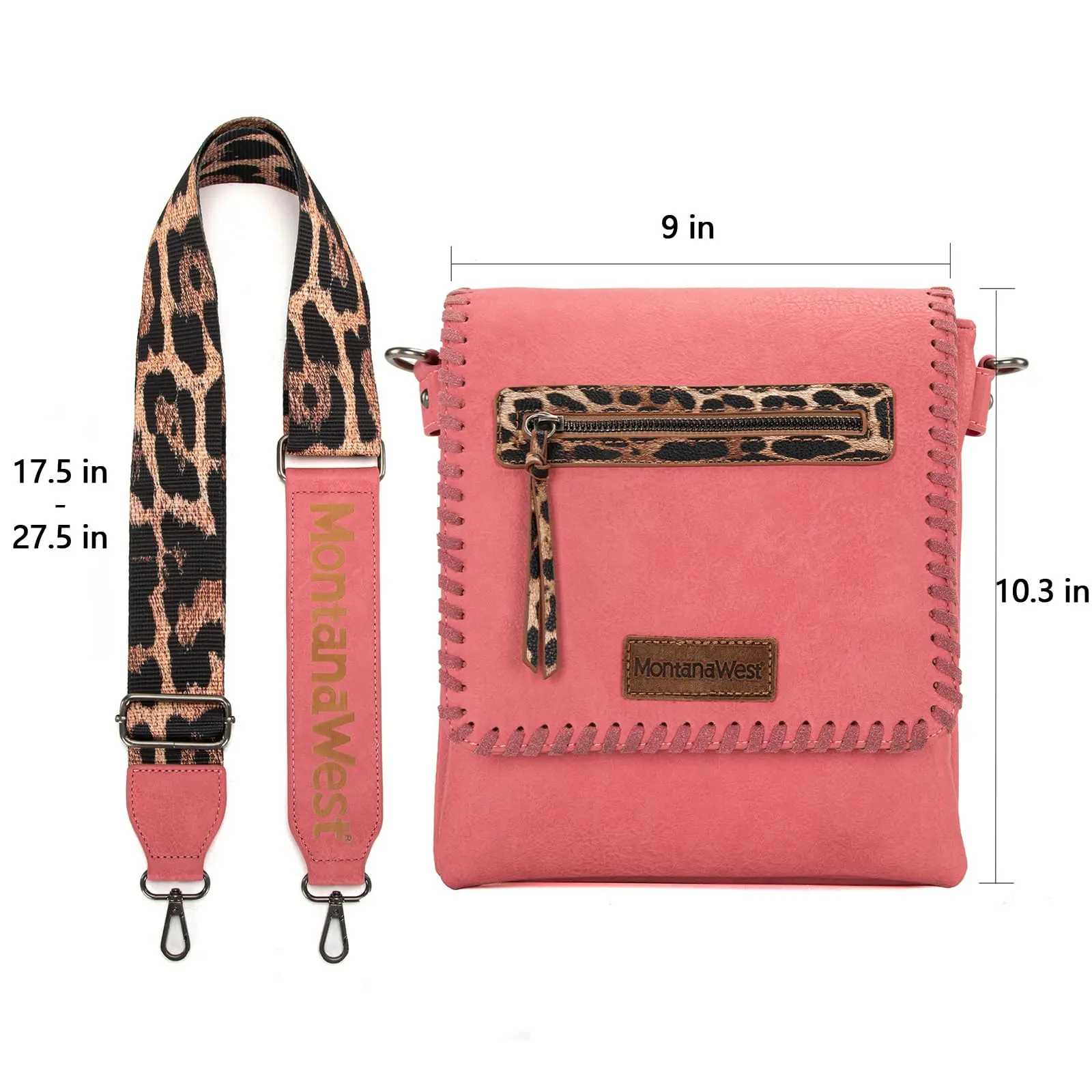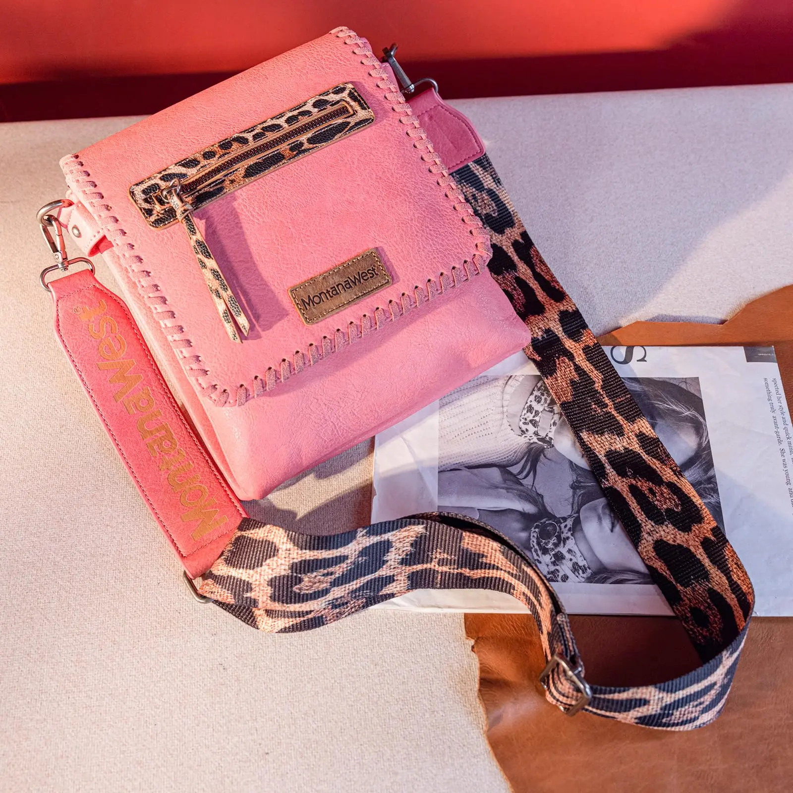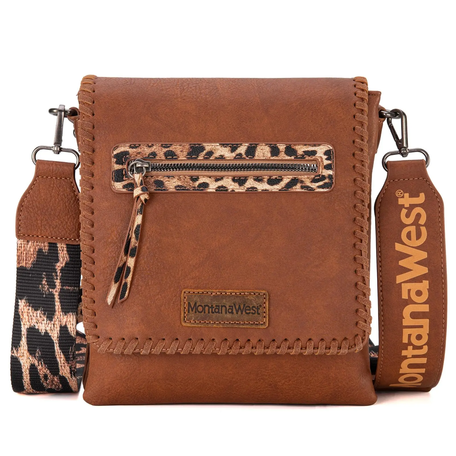 Montana West Western Crossbody Purse with Leopard Print Guitar Strap