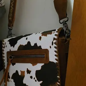 It's beautiful and all but I chose the brown cow print one and got sent the black cow print one. I was disappointed because I wanted to match the brown one with a wallet that I already have. If the color ordered is not Available, people should be advised and not sent a different color.