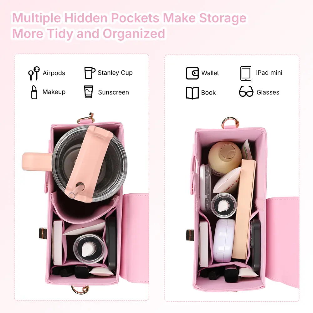 I liked good quality materials, perfect size to fit my Stanley cup, also extra room for more essentials, definitely I recommend it for functionality and stylish option