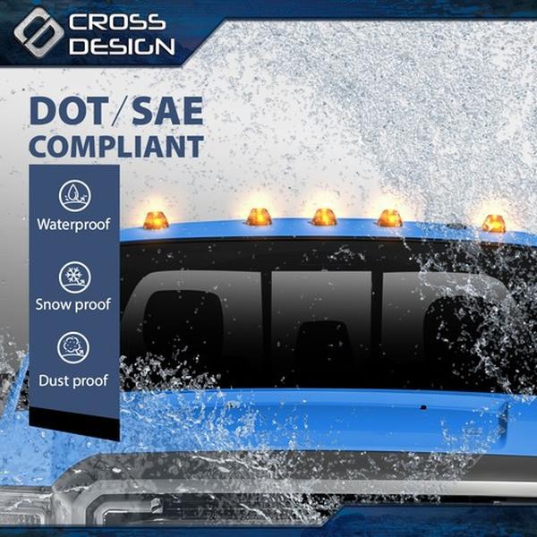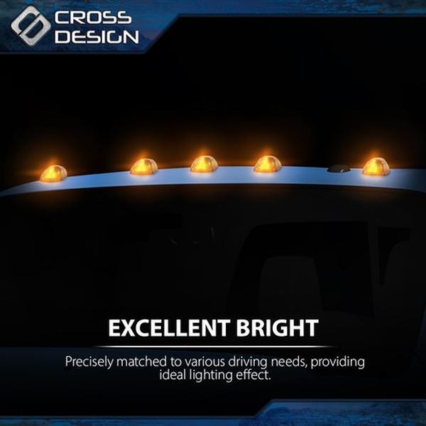 4. CROSSDESIGN 5PC Cab Roof Clearance Marker Lamps w/ White LED Lights Fit For Most Trucks