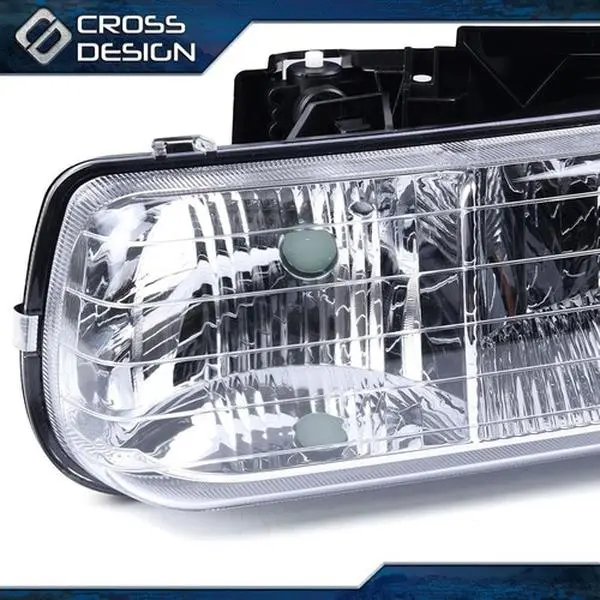 5. CROSSDESIGN Chrome Headlight & Bumper& LED 3RD Brake Cargo Light Fit For 99+ Chevy Silverado