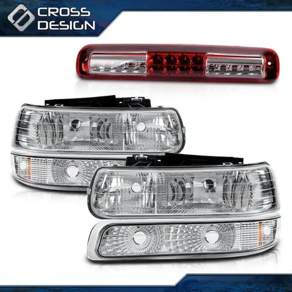 CROSSDESIGN Chrome Headlight & Bumper& LED 3RD Brake Cargo Light Fit For 99+ Chevy Silverado