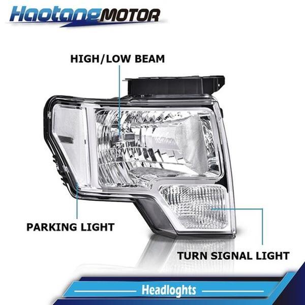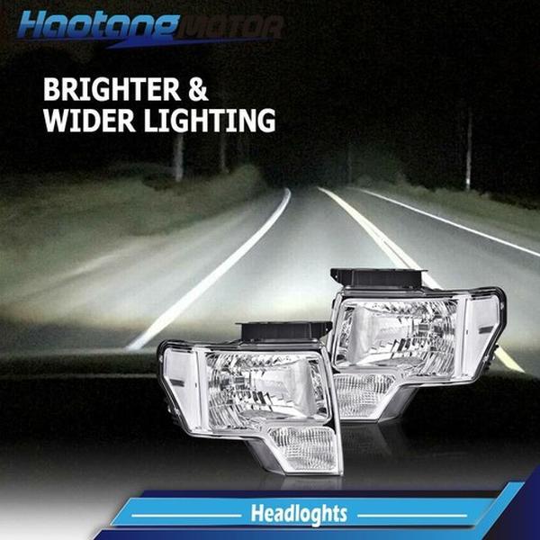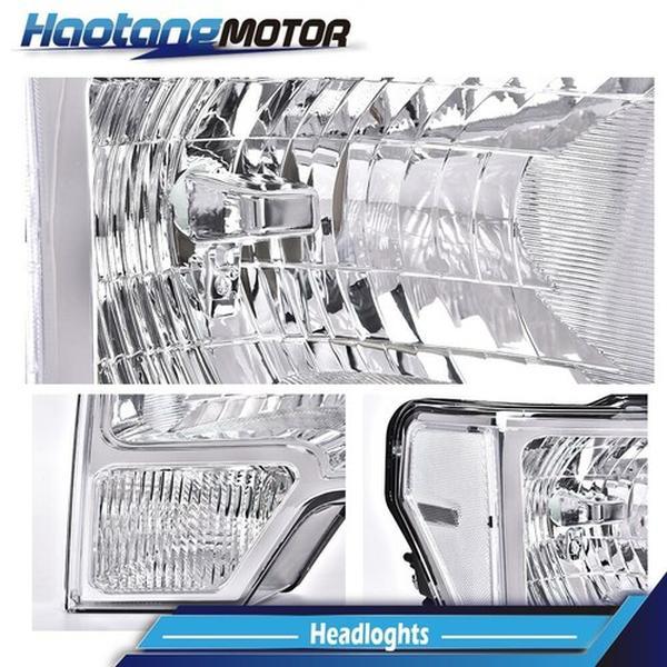 5. CROSSDESIGN CLEAR LENS CHROME HOUSING HEADLIGHTS LAMPS LH+RH FIT FOR 2009-2014 FORD F150