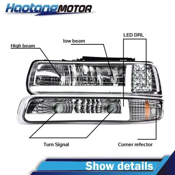 5. CROSSDESIGN LED DRL HEADLIGHTS LAMPS+FOG LIGHTS FITS FOR 99-02 CHEVY SILVERADO 00-06 TAHOE