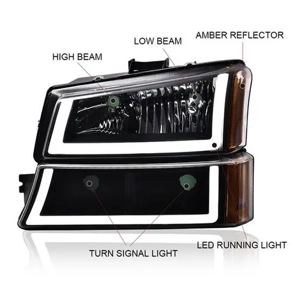5. CROSSDESIGN LED DRL Headlights&Signal HeadLamps Fit For 2003-2007 Chevy Silverado