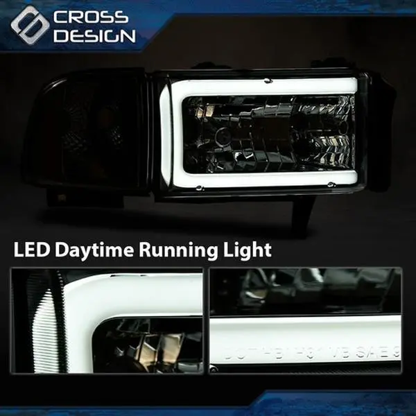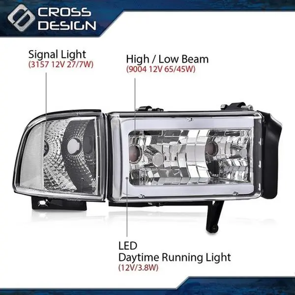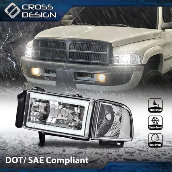 5. CROSSDESIGN LED Tube C Light Bar Headlights Lamps Fit For 1994-2002 Dodge Ram 1500 2500 3500