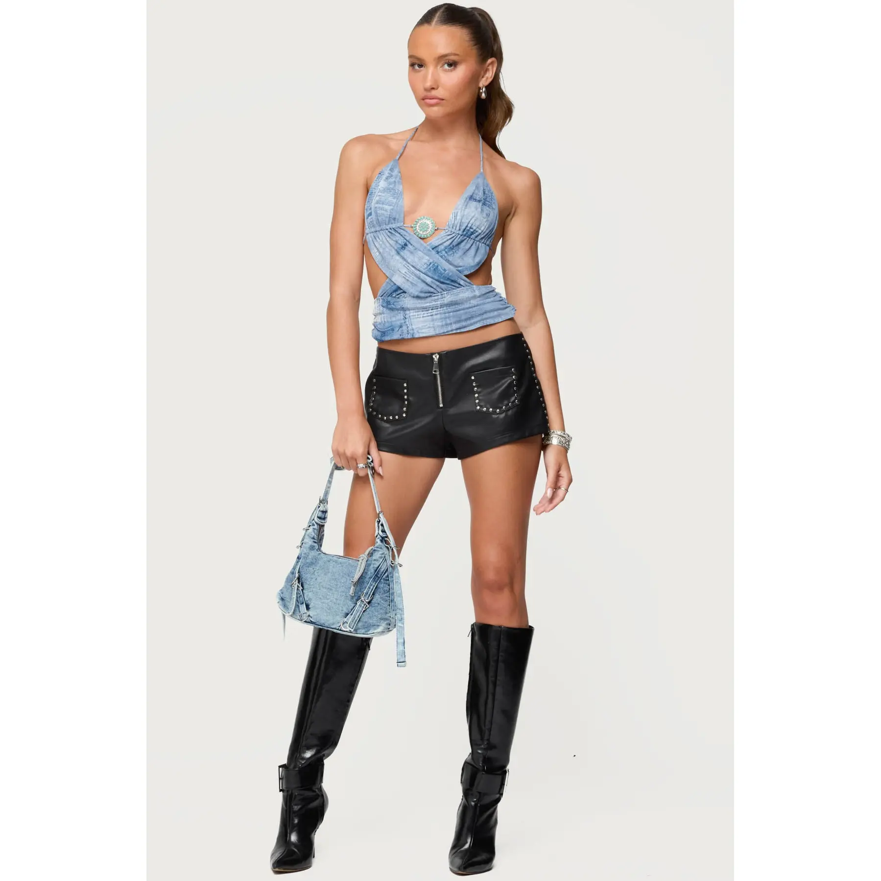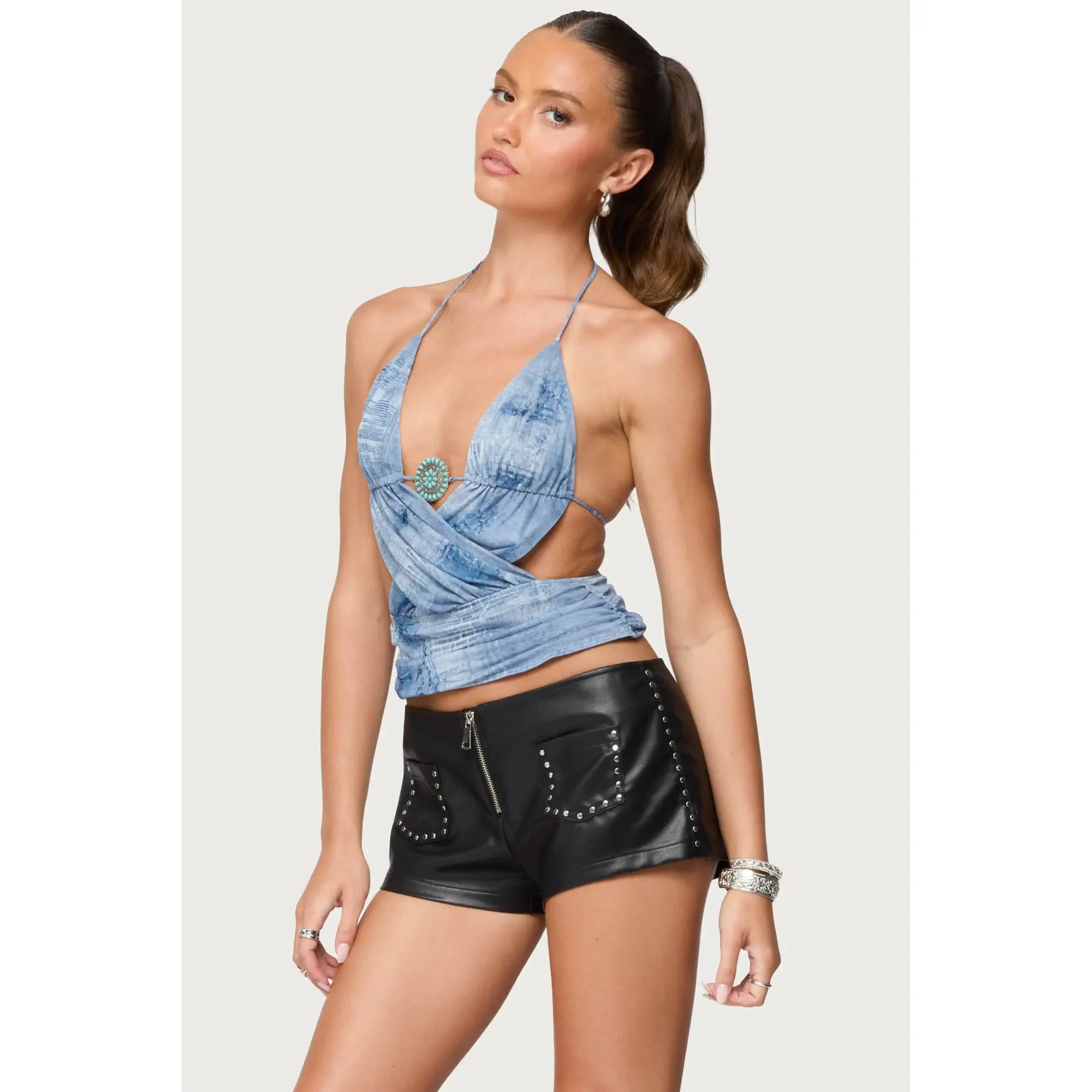 Studded Backless Split Front Top