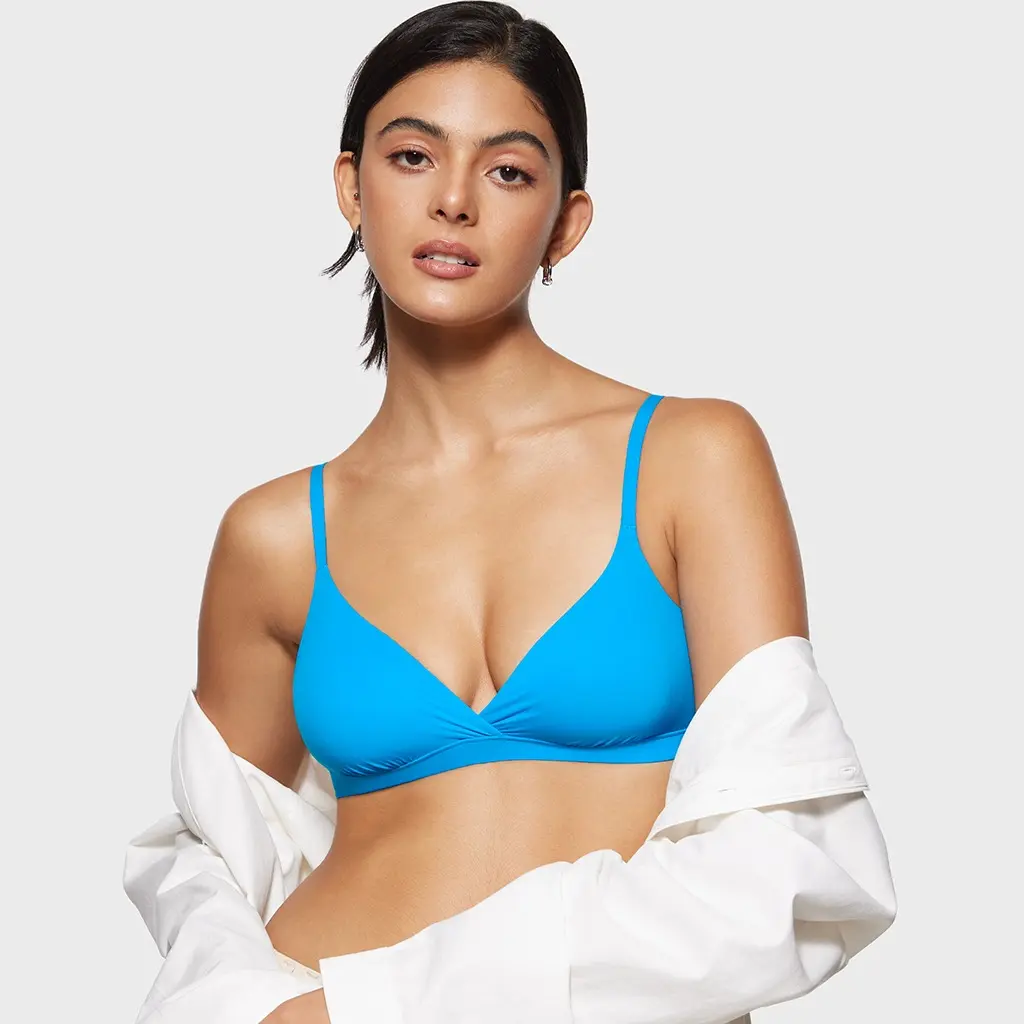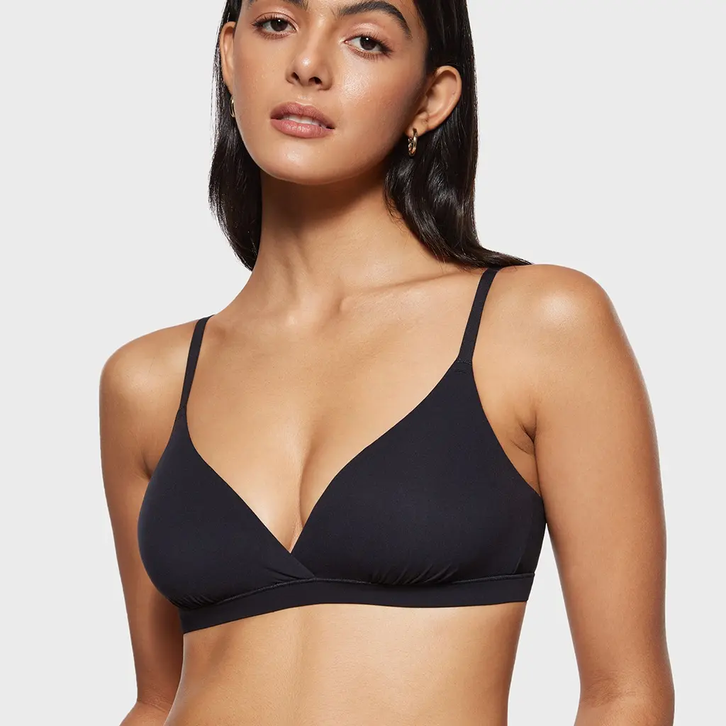 5. INLYRIC Women's Inbarely Triangle Bralette Comfortable Unlined V Neck Wireless Smoothing Bra Top Stretch