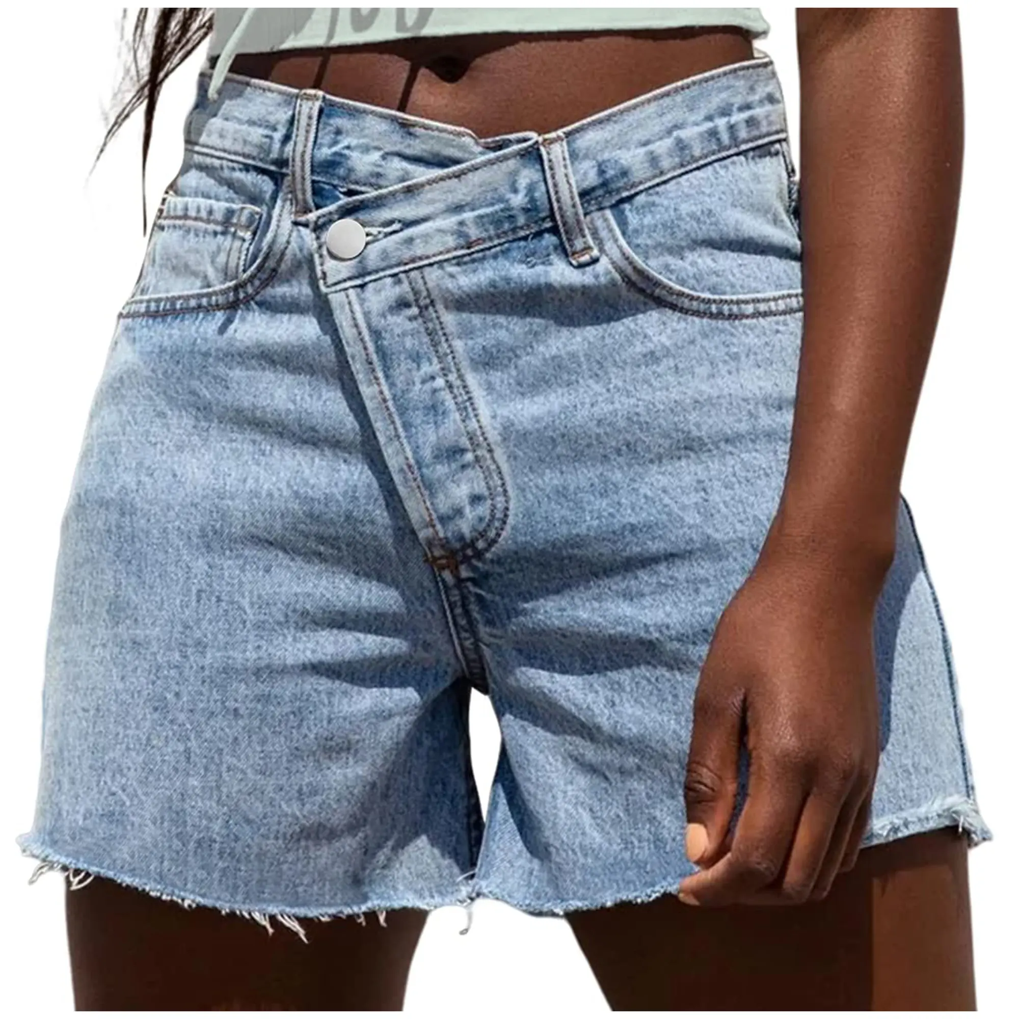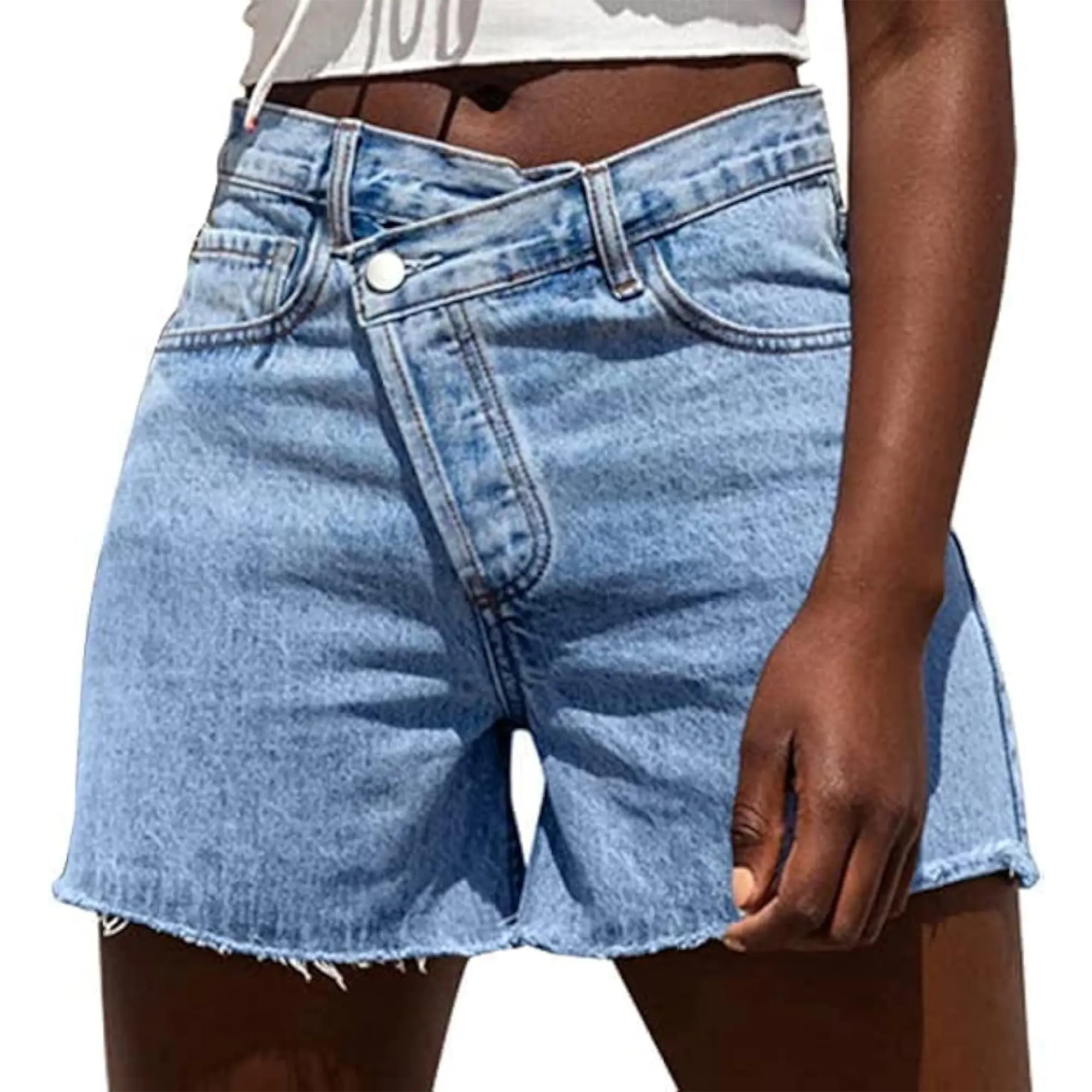 Elevate your summer wardrobe with Genleck's crossover denim shorts, blending trend-setting style with everyday comfort. These shorts feature a unique asymmetrical high-waist, splice, and ripped details, providing a flattering, "boyfriend-style" fit while ensuring durability for daily wear.