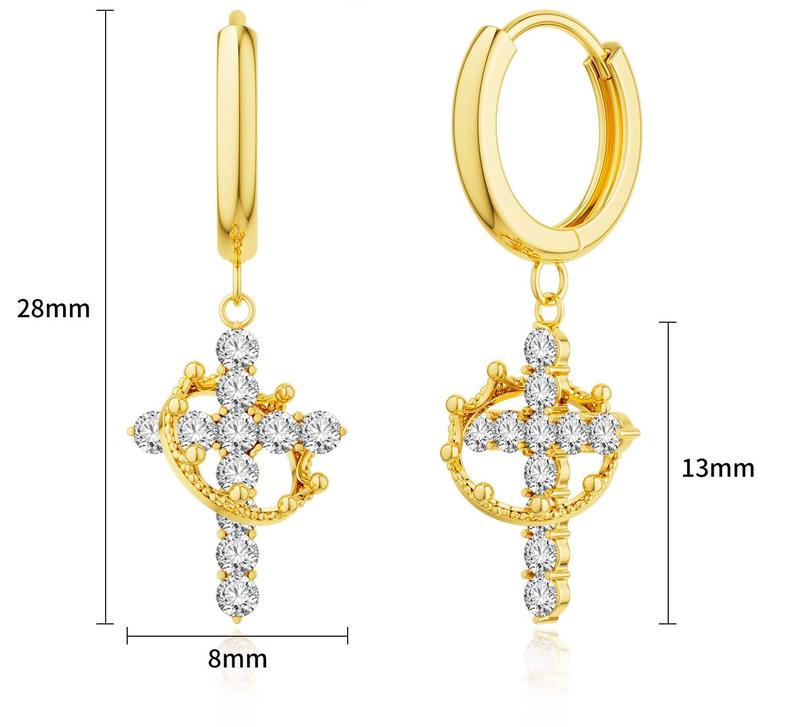 Dearmay Crown Cross Earrings For Women Dainty CZ Cross Pendant Earrings Hypoallergenic Non Tarnish Earrings Trendy Jewelry Christian Gift For Girls For Christmas Gift