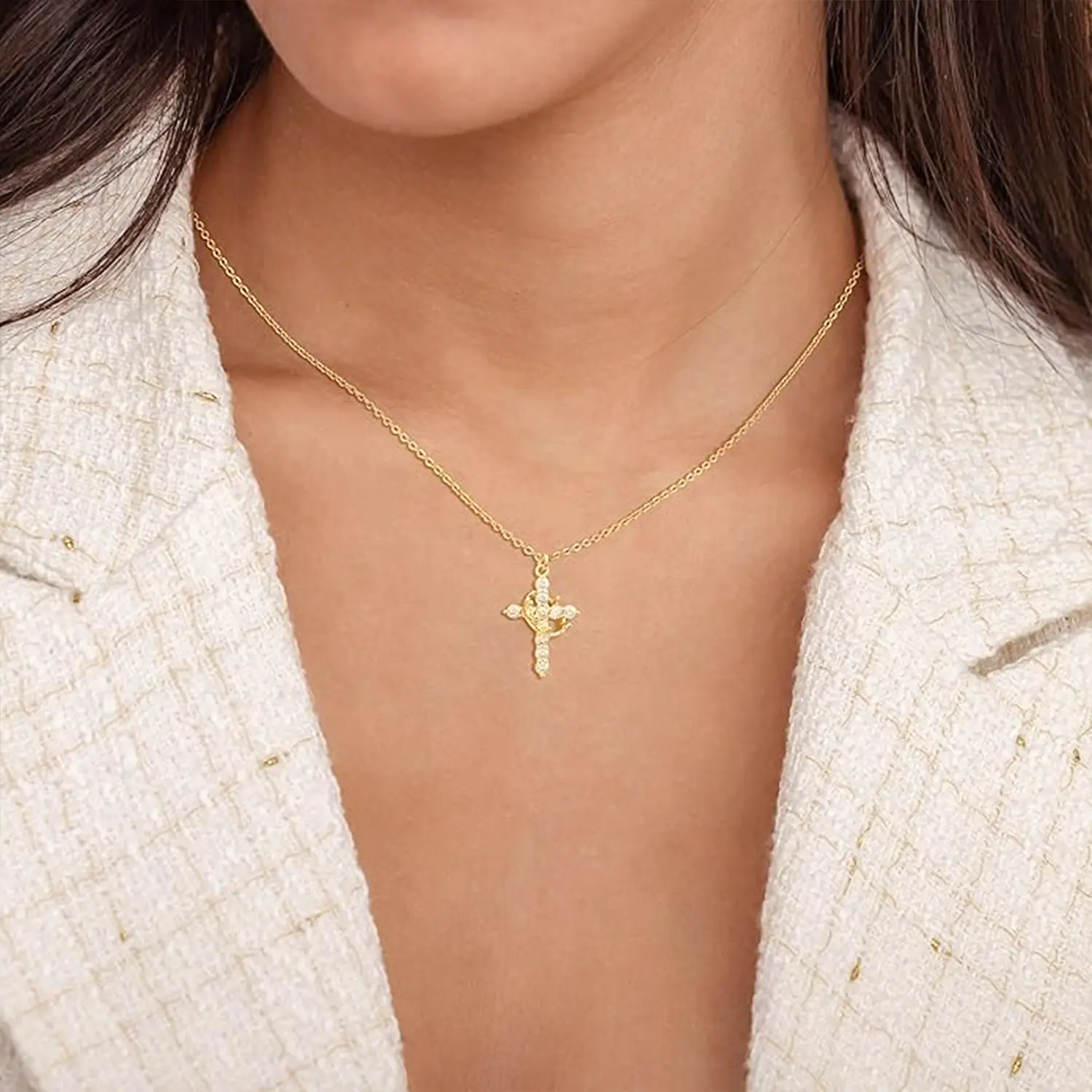 Material: This delicate cross and crown necklace is made of 14K gold-plated, which is skin-friendly and comfortable for daily wear on the go
