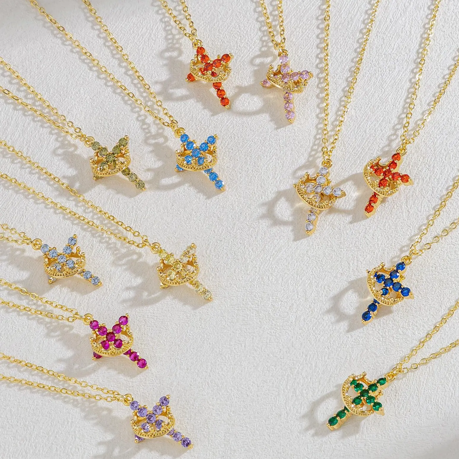 Tewiky Colorful Simple Crown & Cross Pendant Choker Necklace Set for Women & Men