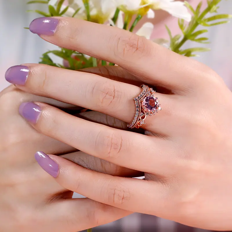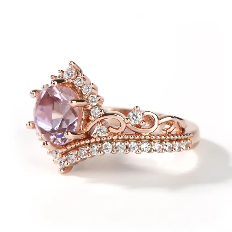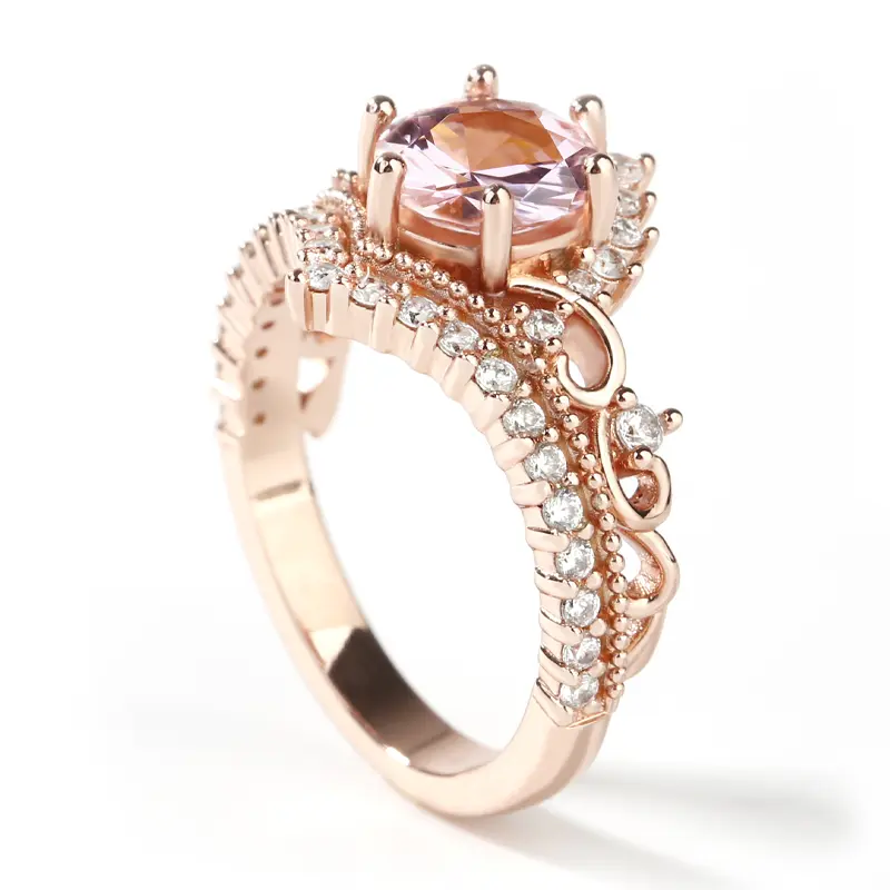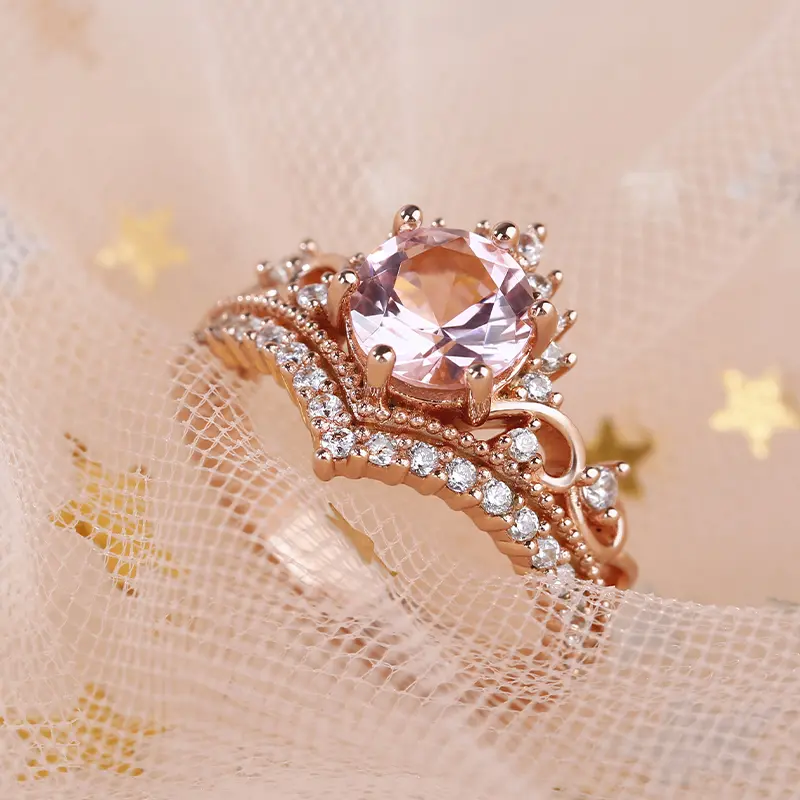 5. Jeulia Crown Design Round Cut Synthetic Morganite Sterling Silver Ring Sterling Silver Zircon Engagement