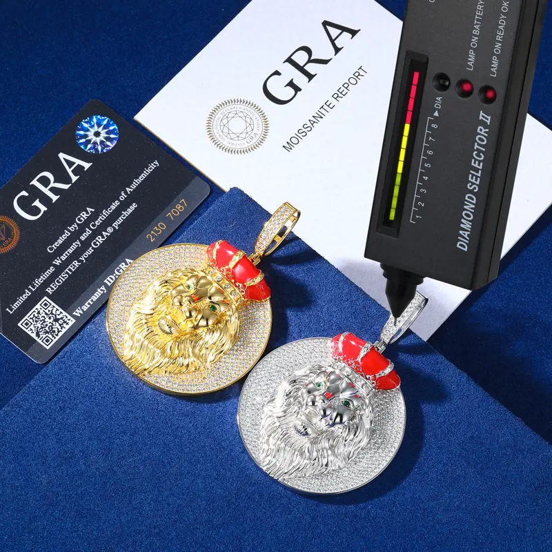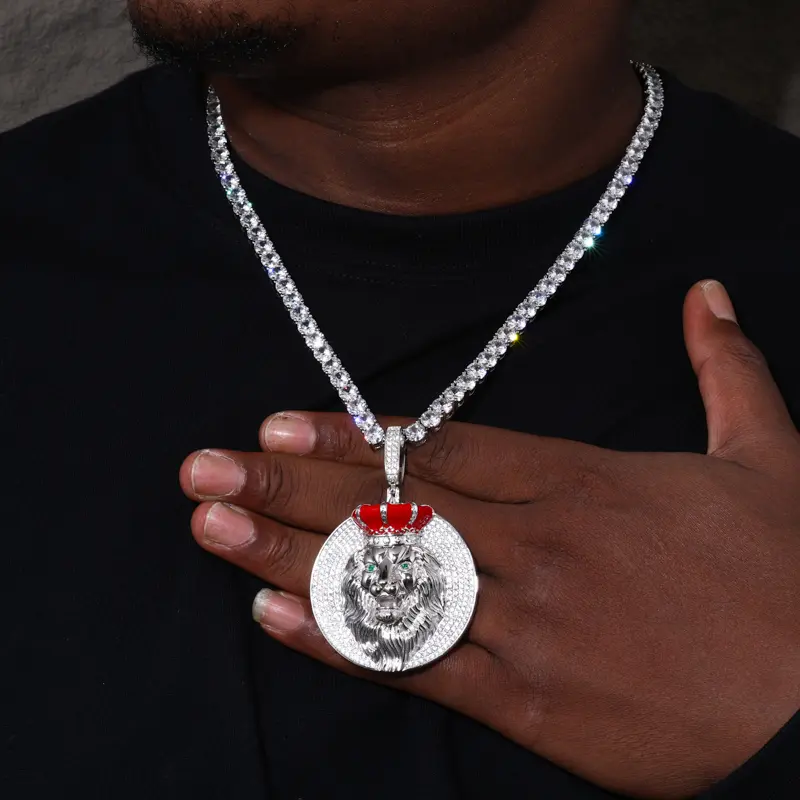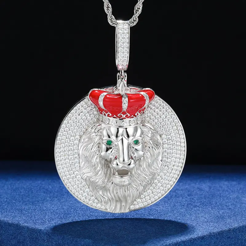 5. 【#P684】Crown Lion Pendant UCCIYO S925 Sterling Silver Synthetic Moissanite Pendant Necklace for Women Men Hip Hop Jewelry Gift