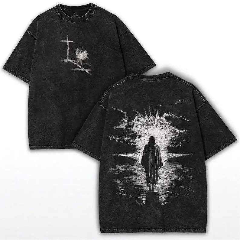 Crown of Thorns Jesus Oversized Tee: Vintage Washed Heavy Cotton Christian T-Shirt Menswear Top Casual Crewneck