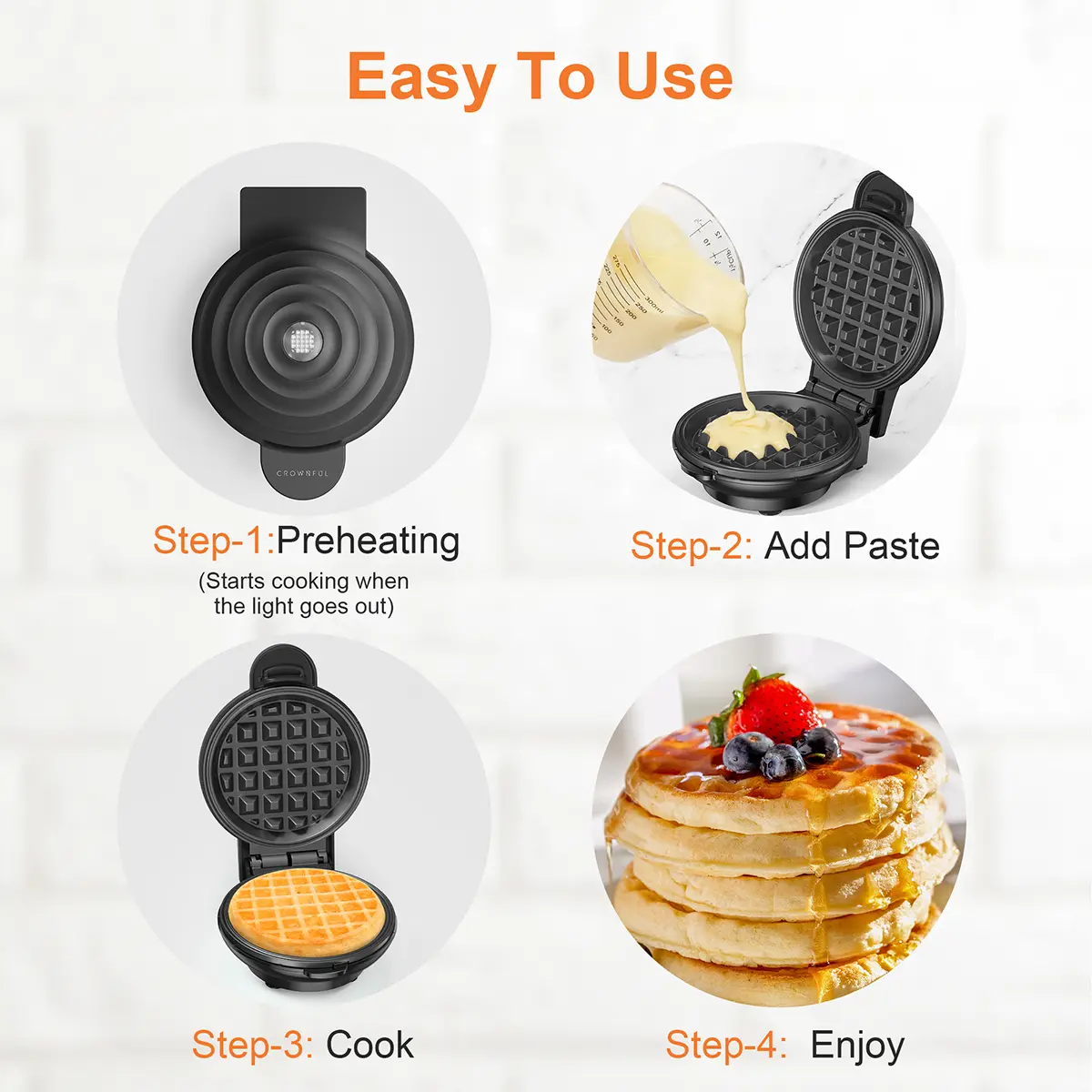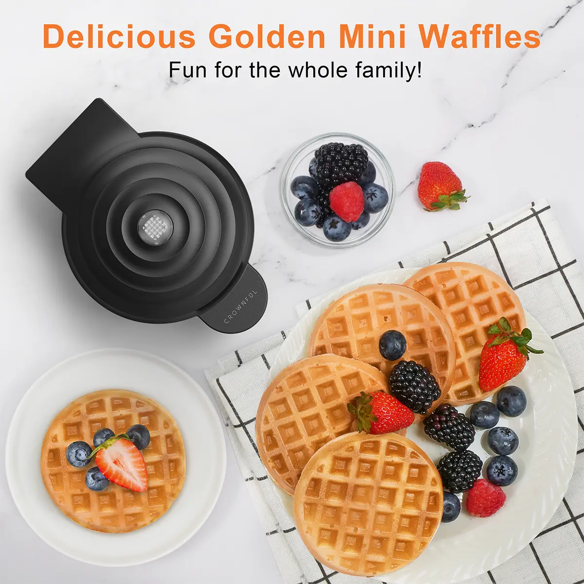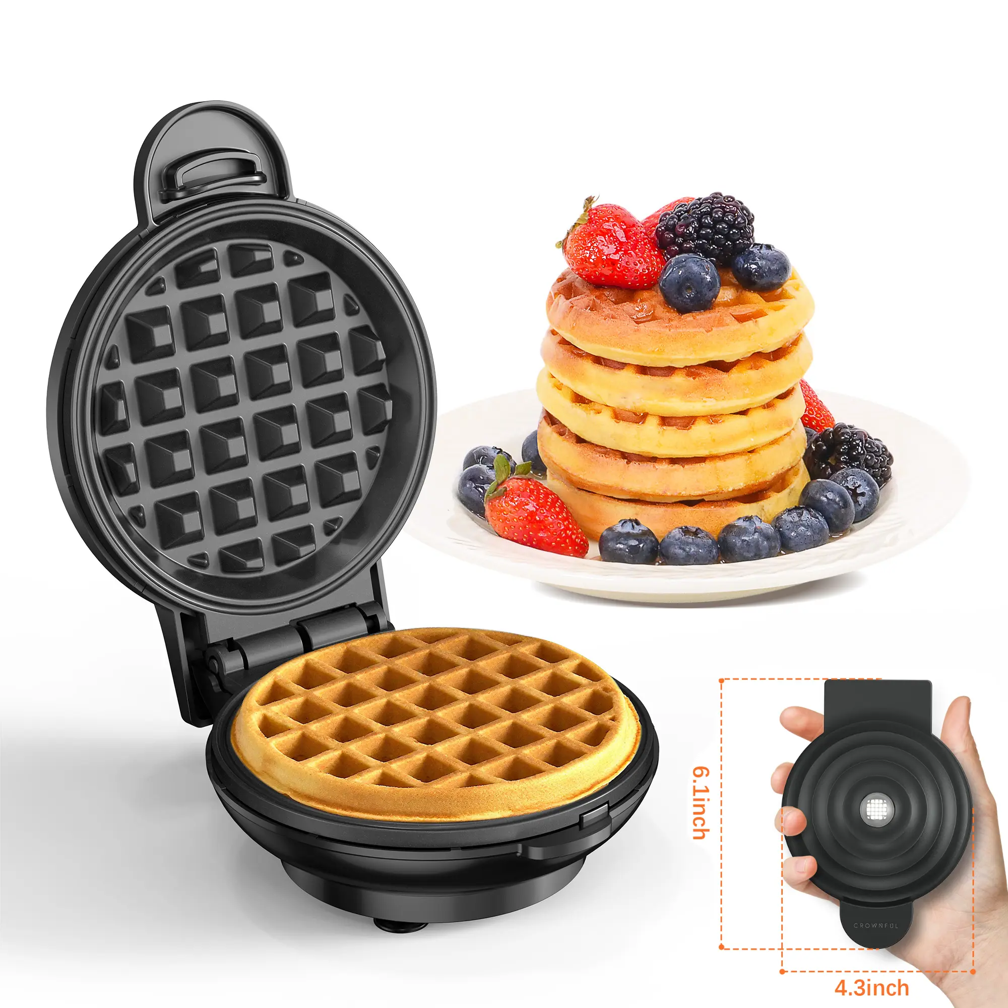 Crownful Mini Waffle Maker, 4 Inch, Palm-sized