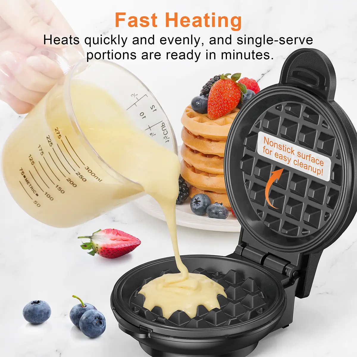 Built with durable metal construction, it’s made to last. With 350 watts of power, it heats up quickly for efficient cooking. Plus, you'll get a handy recipe booklet packed with tasty ideas. Quick & Easy Breakfasts await!