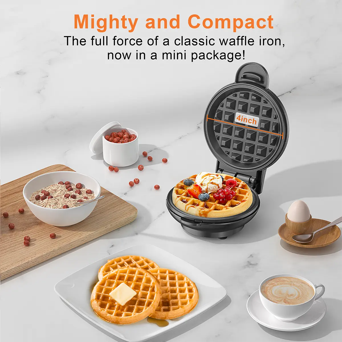 Whip up flawless waffles in just minutes! This 4-inch waffle maker is perfect for busy families and kids. It's ideal for breakfast, dessert, or quick snacks. The non-stick coating ensures easy cleanup. Just plug it in, wait for the indicator light, and start cooking on the non-stick plates. Its compact design fits anywhere—ideal for dorms, RVs, or cozy kitchens.
