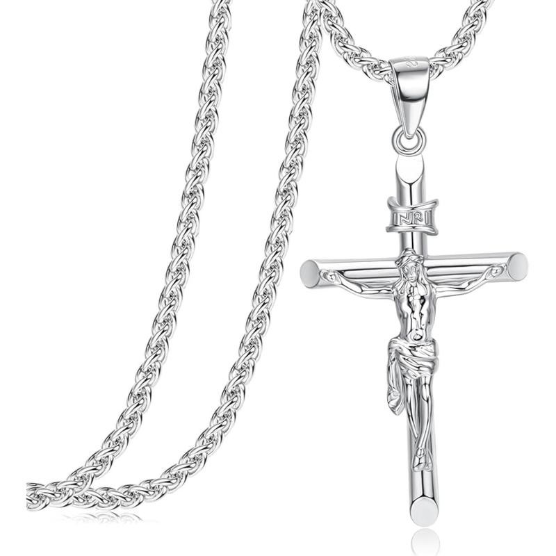 ·Elegant Crucifix Necklace-- Exquisitely engraved handcrafted Jesus cross pendant necklaces, with 2.5mm stainless steel rope chain. It's a symbol of faith and a timeless count for both men and women. Wearing this classic crucifix necklace not only adds a touch of spirituality to your style but also ensures durability and long-lasting beauty. Express your faith and fashion sense with this high-quality count.