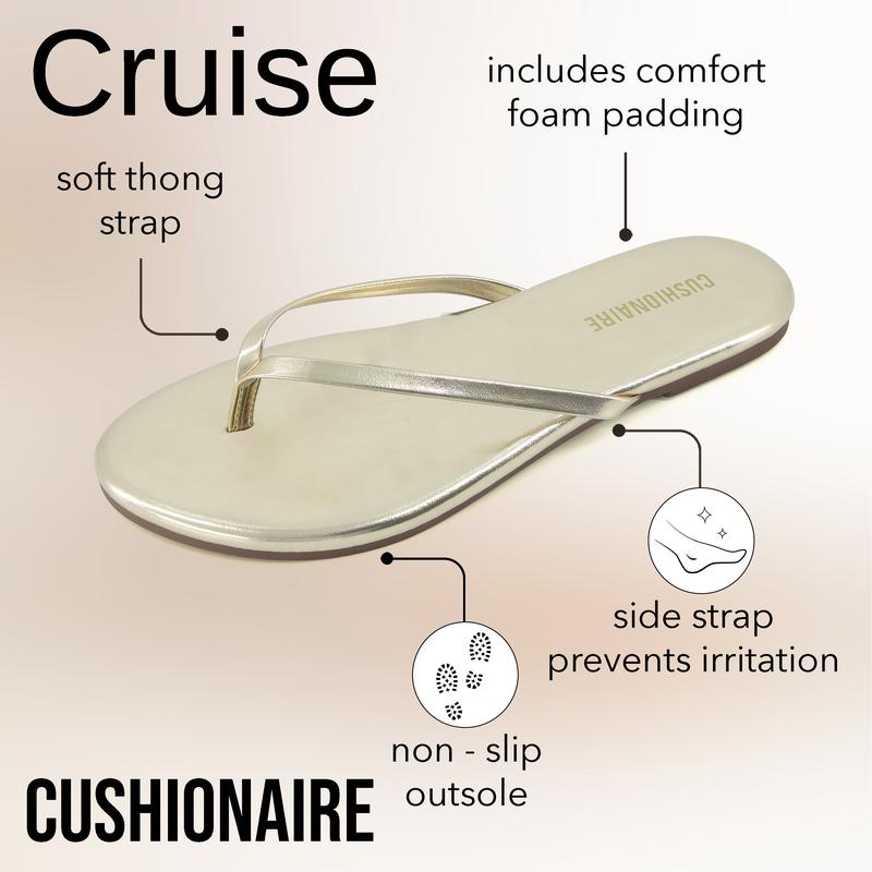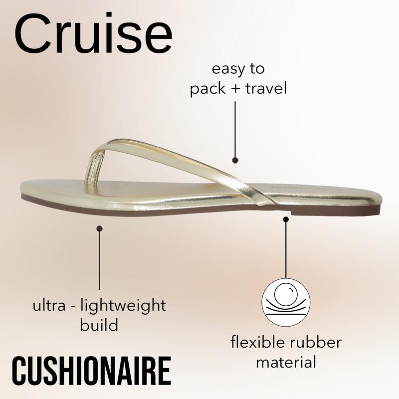 Meet Cruise, a minimalist thong sandal for women that's designed for comfort, durability, and versatility. Whether you're heading to the beach, strolling through the park, or enjoying a casual outing, these sleek and minimalist vacation essentials for women are designed to keep up with your lifestyle. The cushioned footbed delivers soft support for all-day comfort, making these women's sandals an excellent choice for long walks, extended wear, or even casual dressy occasions. Get ready to elevate your summer style with Cruise.