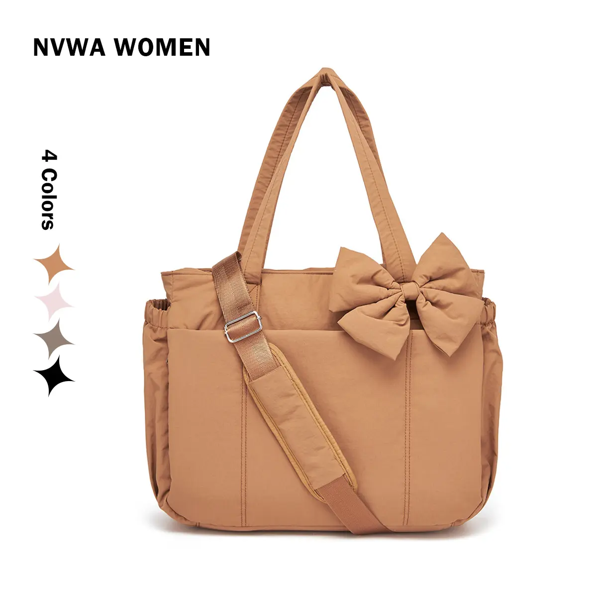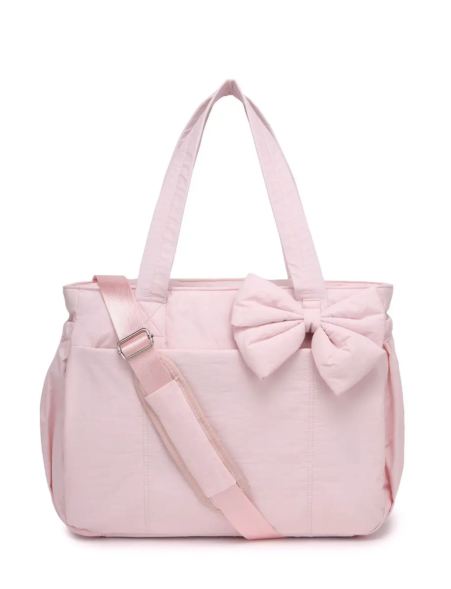 This tote bag suitable for laptop is perfect for women.It's lightweight and fluffy, perfect for travel, work, the beach, and gym use.The bag comes with an attachable bowknot accessory, adding a stylish touch.It comes with multiple compartments for organized storage.