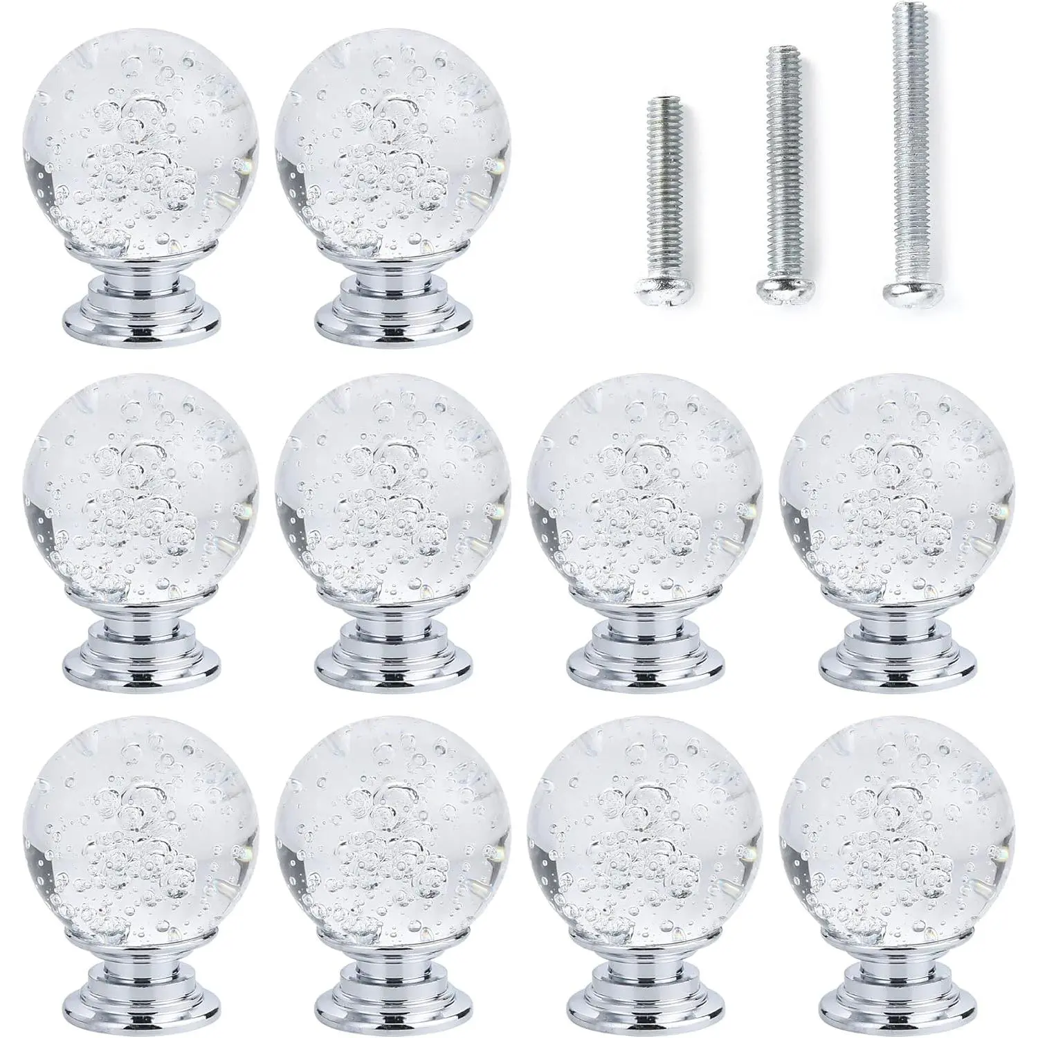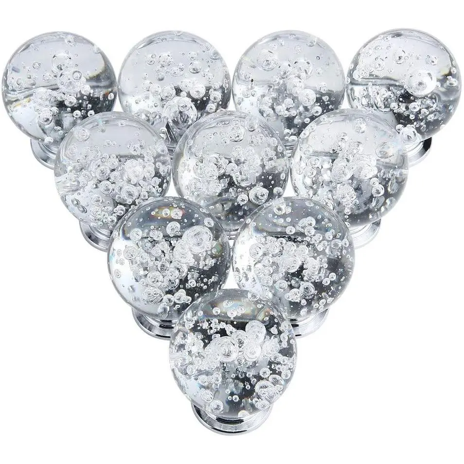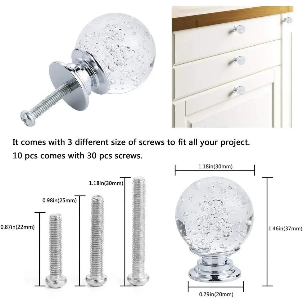 10 PCS Crystal Cabinet Knobs Round Glass Bubbles Knobs Smooth Drawer Pulls Handle for Home, Cabinet, Drawer and Dresser with 3 Different Size Screws, 30MM (Transparent) - .com