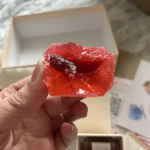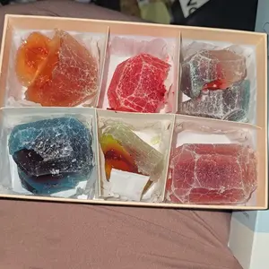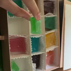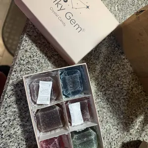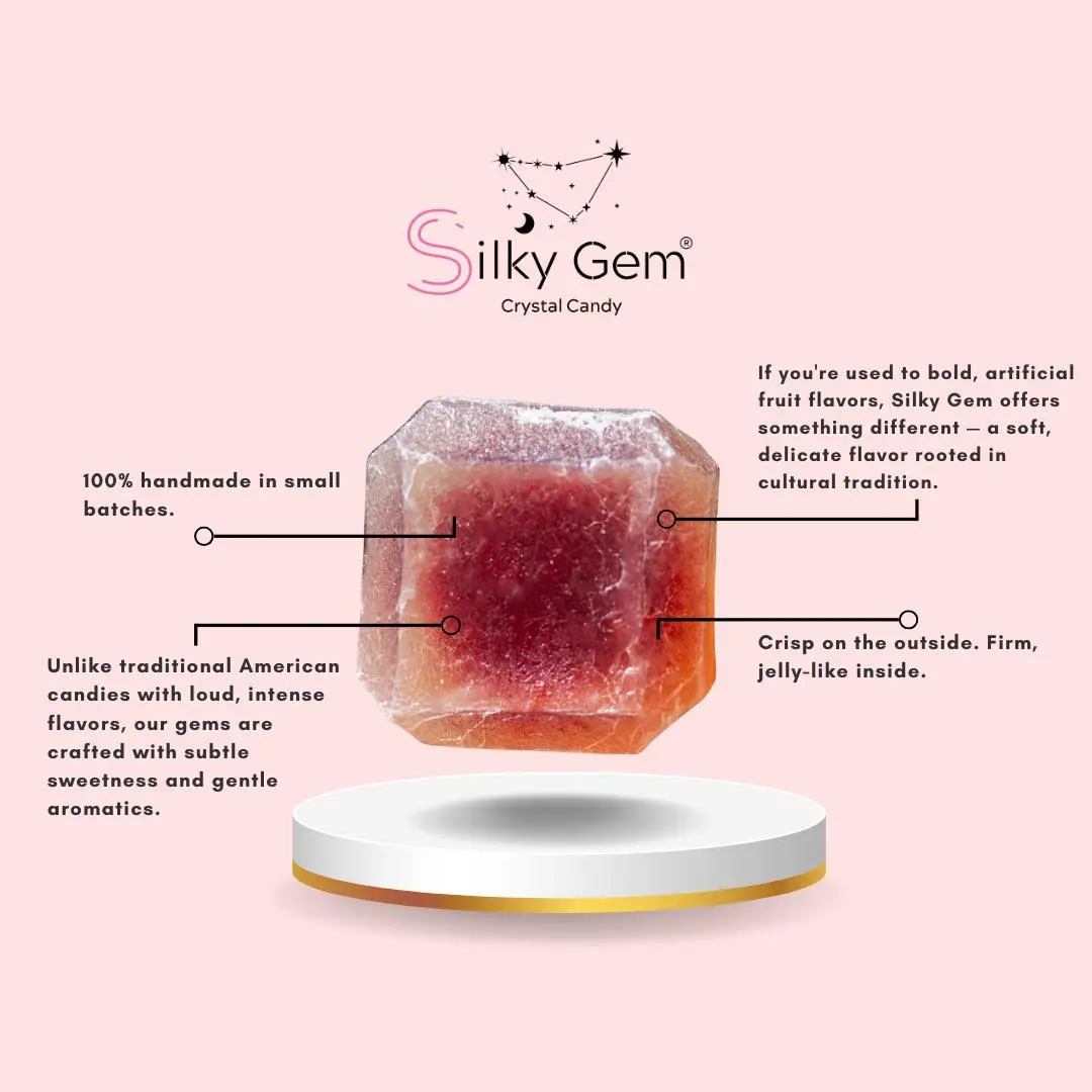 During warmer shipping, candies may sweat or develop condensation. This is a natural phenomenon and does not affect quality or taste. Simply remove from packaging, place on a plate, and allow to air out for a day or two. Silky Gem crystal candies are inspired by traditional Asian confections and are intentionally lightly flavored.