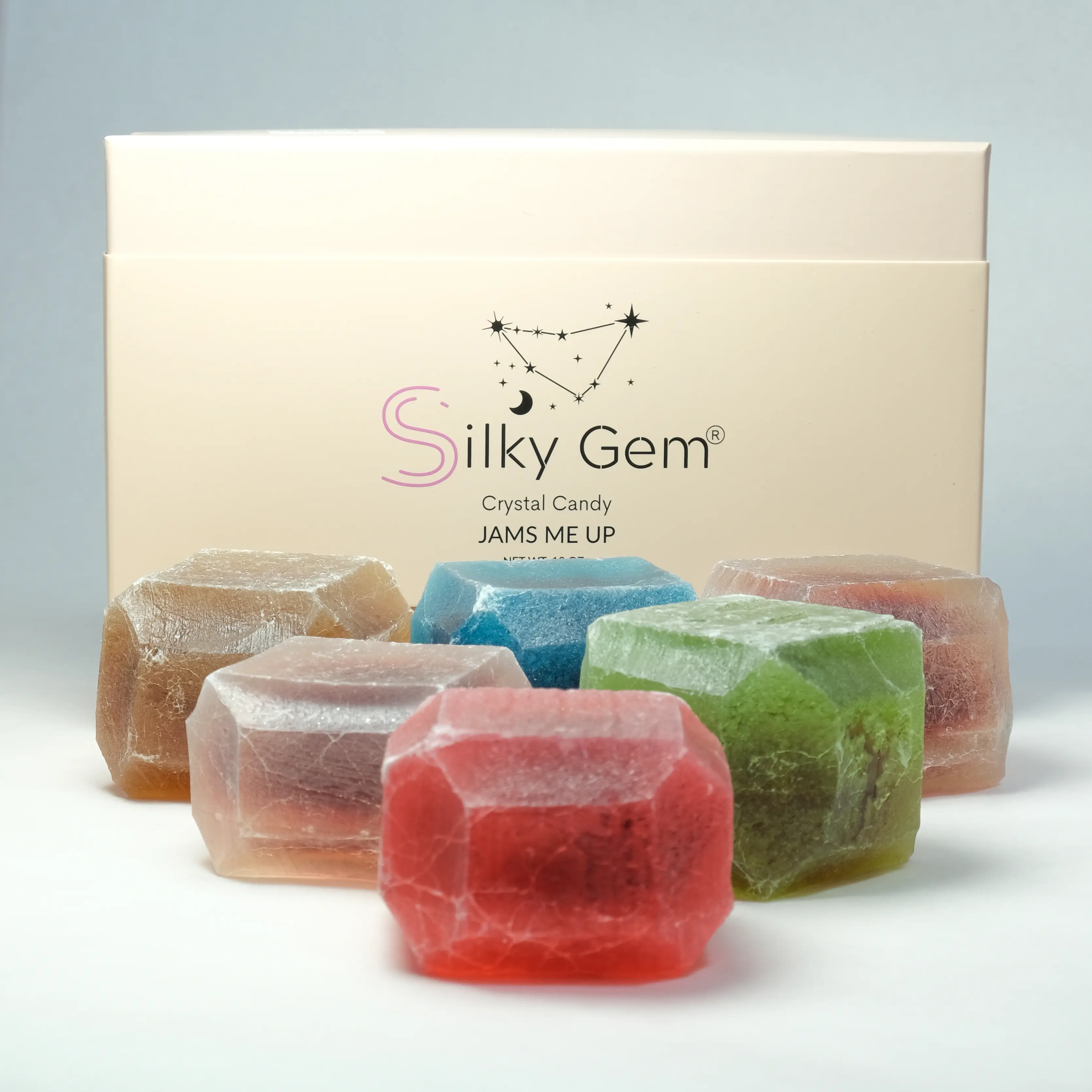 Please note that due to the handcrafted, all-natural creation of the Silky Gem Jams Me Up Crystal Candy Collection, each jelly-filled candy gem has a unique shape and color, adding to its charm. Products may vary slightly from the photos. We do not allow special requests or substitutions.