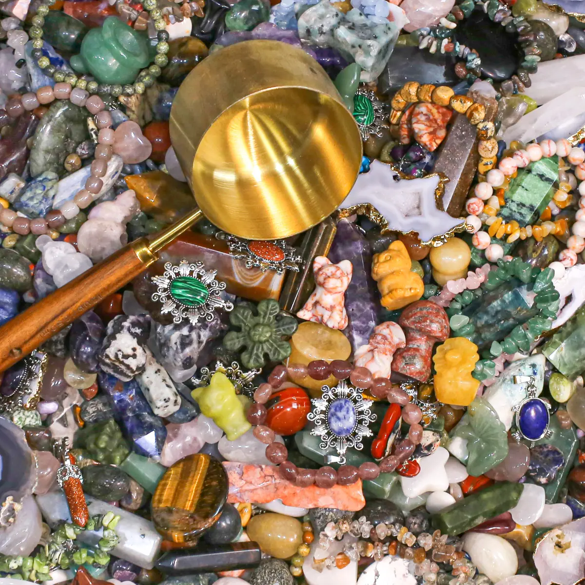 Dive into a world of sparkling wonder with our Crystal Scoop. A curated selection of assorted gemstones invites you to experience joy and surprise. Whether you're a seasoned collector or just starting, each scoop offers unique colors, energies, and natural beauty.