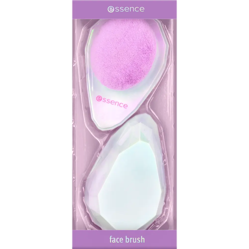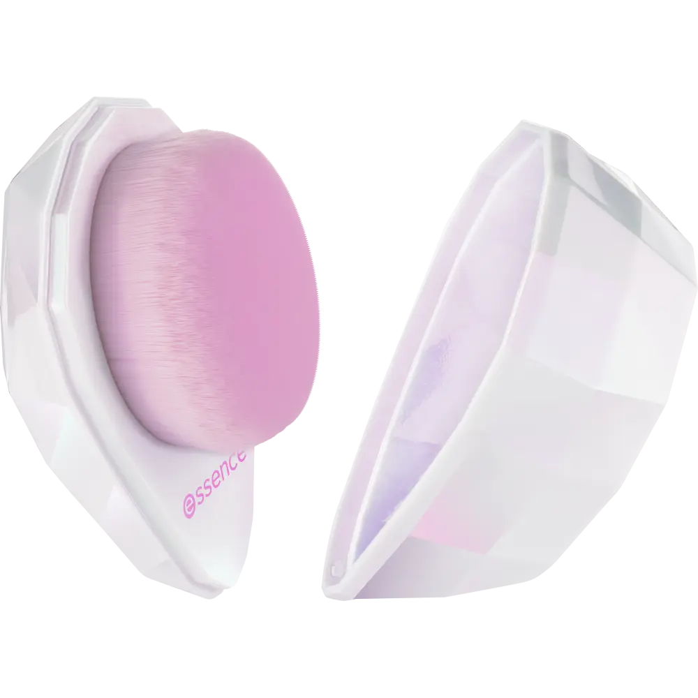essence Crystal Crush Face Brush blends liquid and cream textures seamlessly with ultra-soft, tightly bound synthetic bristles. Its dense buffer shape ensures smooth, even application for a flawless finish. Housed in a faceted opal-inspired case with a holographic effect and protective cap, it’s an essential for your routine.