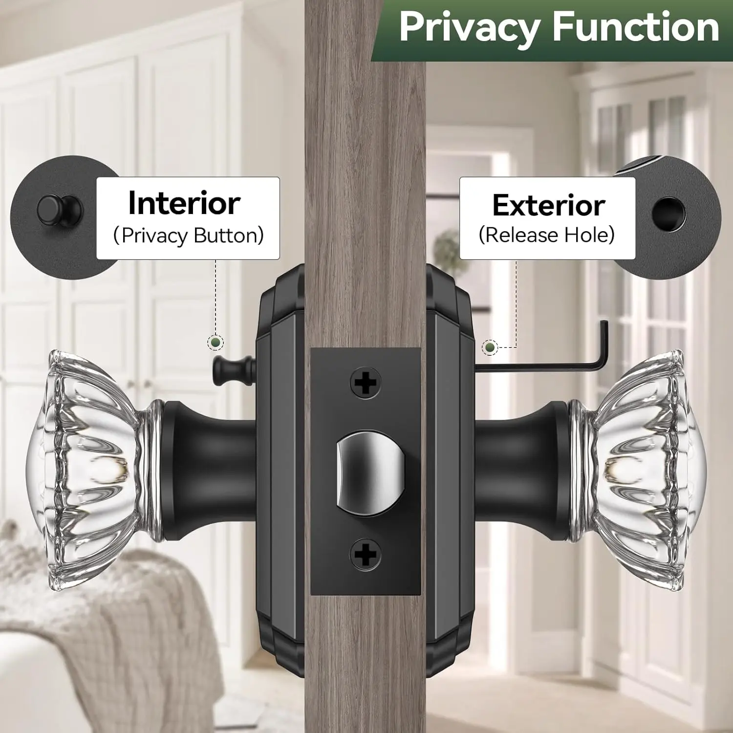 Crystal Glass Door Knob | Privacy Lock for Bedroom Bathroom Interior Vintage Style