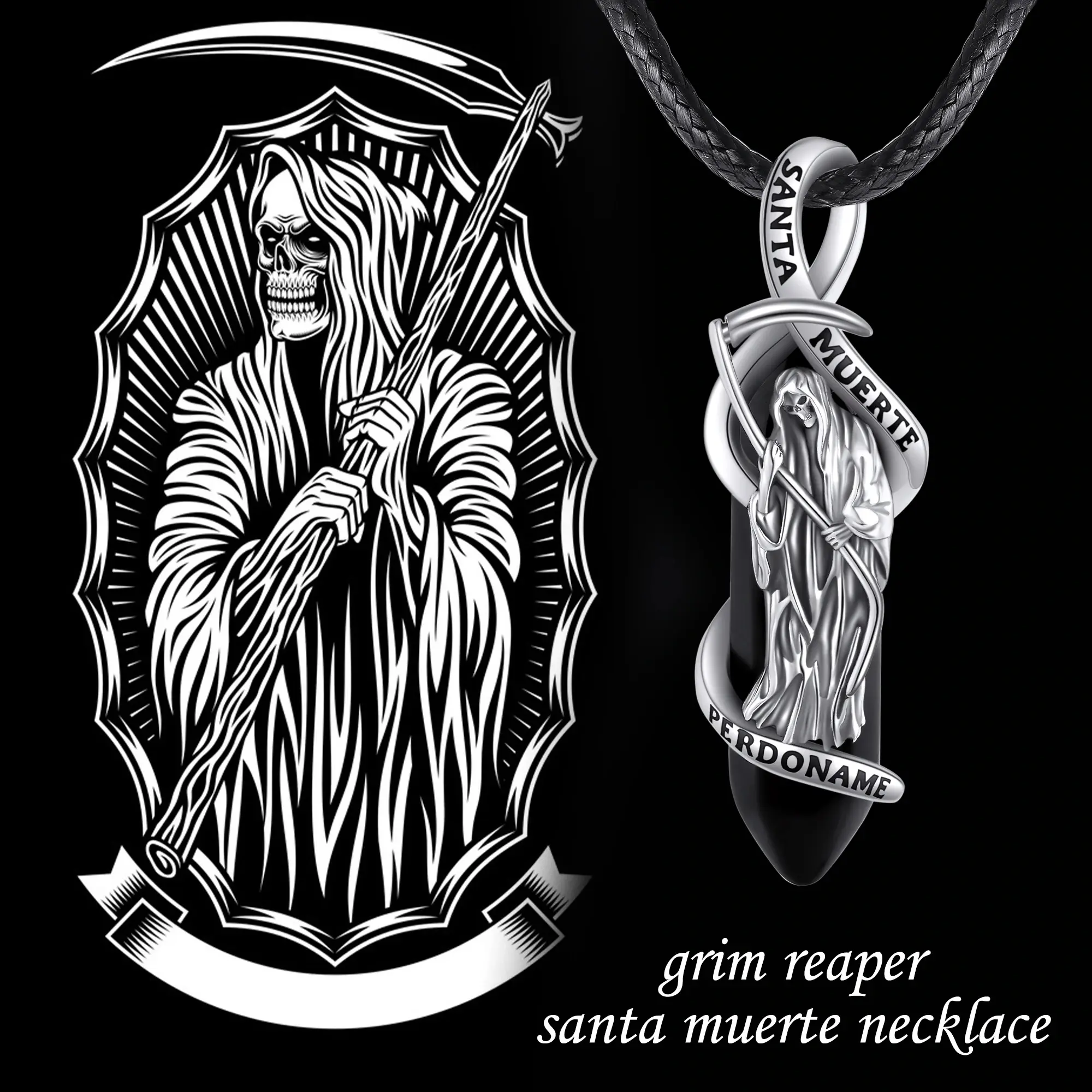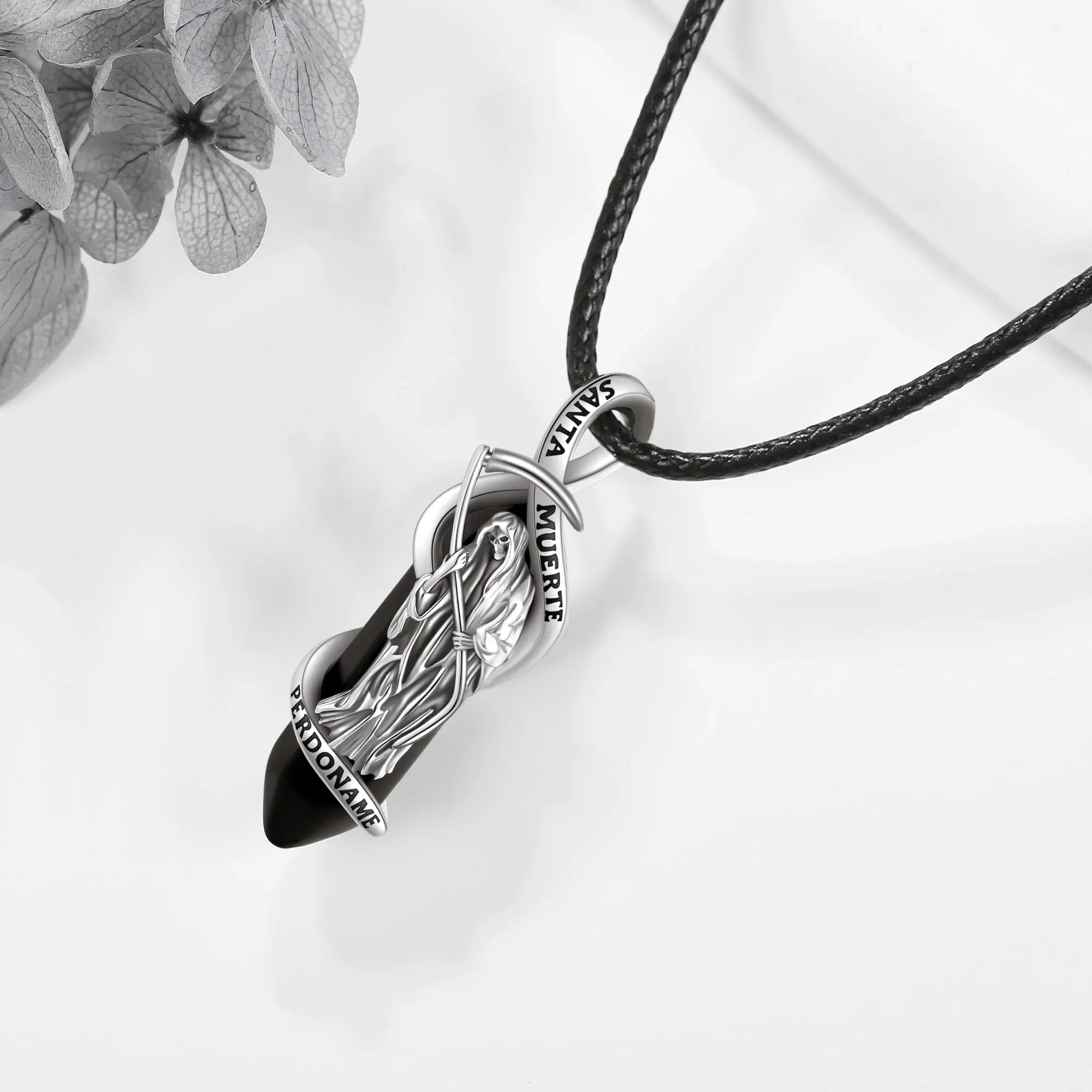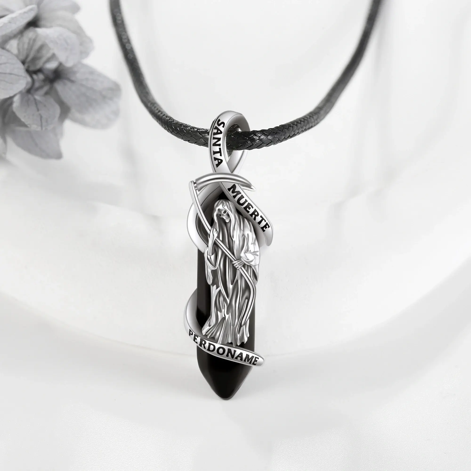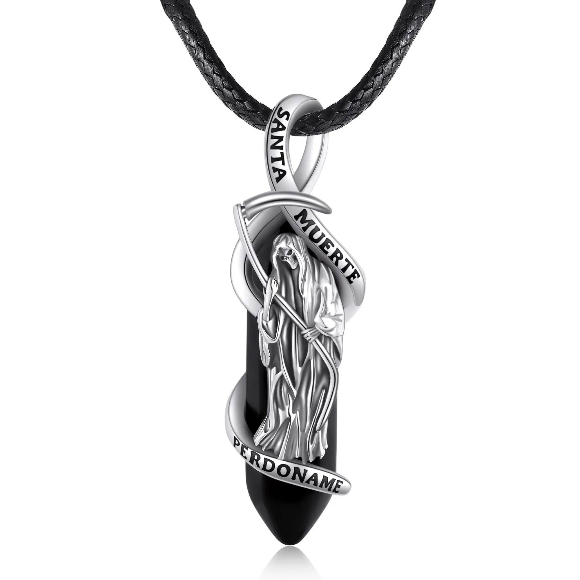 Crystal Santa Muerte Necklace 925 Sterling Silver Grim Reaper Pendant Necklace Protection Jewelry Gift TikTokShopBlackFriday