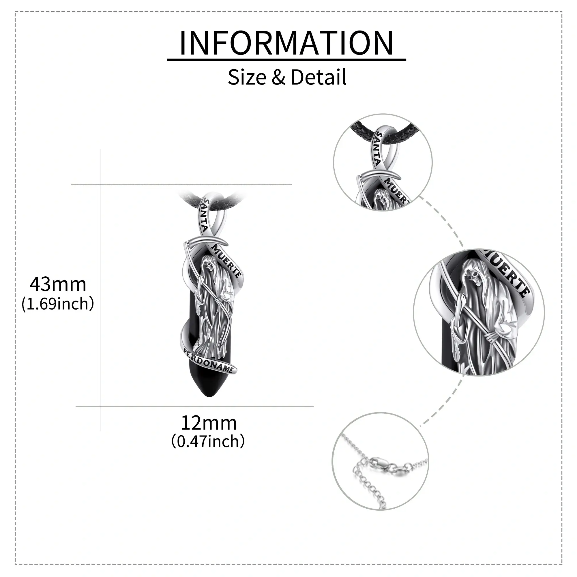 Size:This Santa Muerte Necklace adopts an adjustable chain length design of 20+2 inches. The Pendant Size is 1.69*0.47 inches (43*12mm)