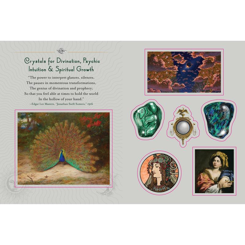 Decorate planners, journals, laptops, gift boxes, collages, and more with stunning artworks that illustrate the inherent aspects and correspondences of key crystals. The stickers are organized into six categories: holistic healing & meditation, serenity & sleep; love, romance & fertility; family & friends, pets & home; divination, psychic intuition & spiritual growth; success, abundance & luck; and protection & strength, courage & confidence. Each category opens with an evocative poetic quote to set the mood. this exquisite sticker book for adults conjures up the allure of old-world esoterica with a modern spirit.