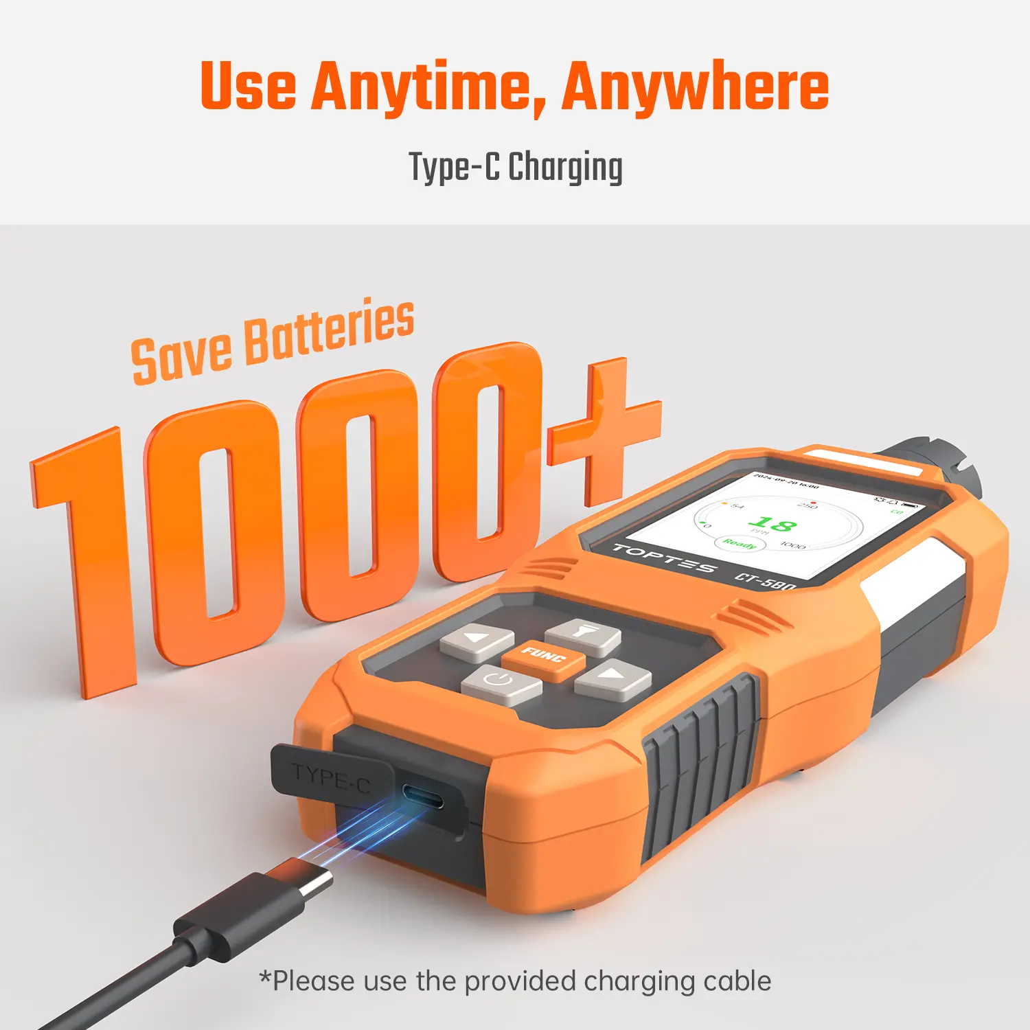 ·User-Friendly & Durable Design: The cT-580 is made from high-quality ABSengineering plastic for easy grip and use. lt also features adjustable screen brightnessauto screen-off, a built-in flashlight, and USB-C charging, providing convenience anduser-friendly functionality in every aspect