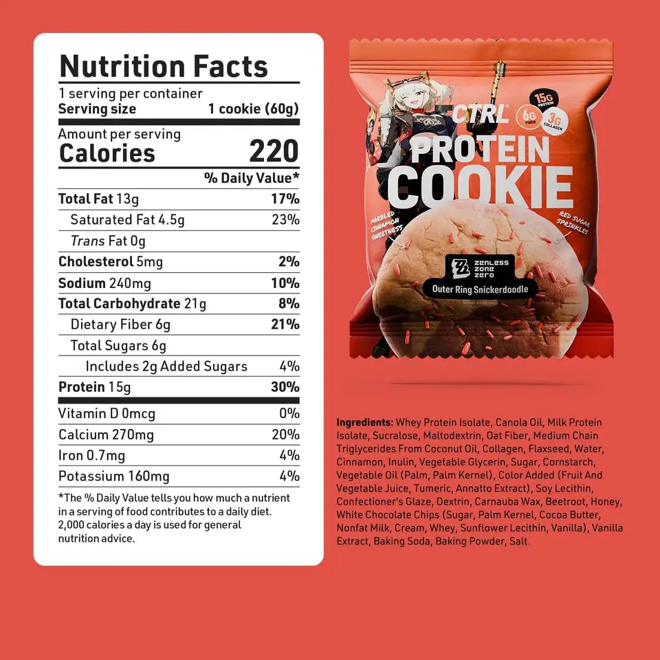 | Ingredients | Whey Protein Isolate, Canola Oil, Milk Protein Isolate, Sucralose, Maltodextrin, Oat Fiber, Medium Chain Triglycerides From Coconut Oil, Collagen, Flaxseed, Water, Cinnamon, Inulin, Vegetable Glycerin, Sugar, Cornstarch, Vegetable Oil (Palm, Palm Kernel), Color Added (Fruit And Vegetable Juice, Tumeric, Annatto Extract), Soy Lecithin, Confectioner's Glaze, Dextrin, Carnauba Wax, Beetroot, Honey, White Chocolate Chips (Sugar, Palm Kernel, Cocoa Butter, Nonfat Milk, Cream, Whey, Sunflower Lecithin, Vanilla), Vanilla Extract, Baking Soda, Baking Powder, Salt. |