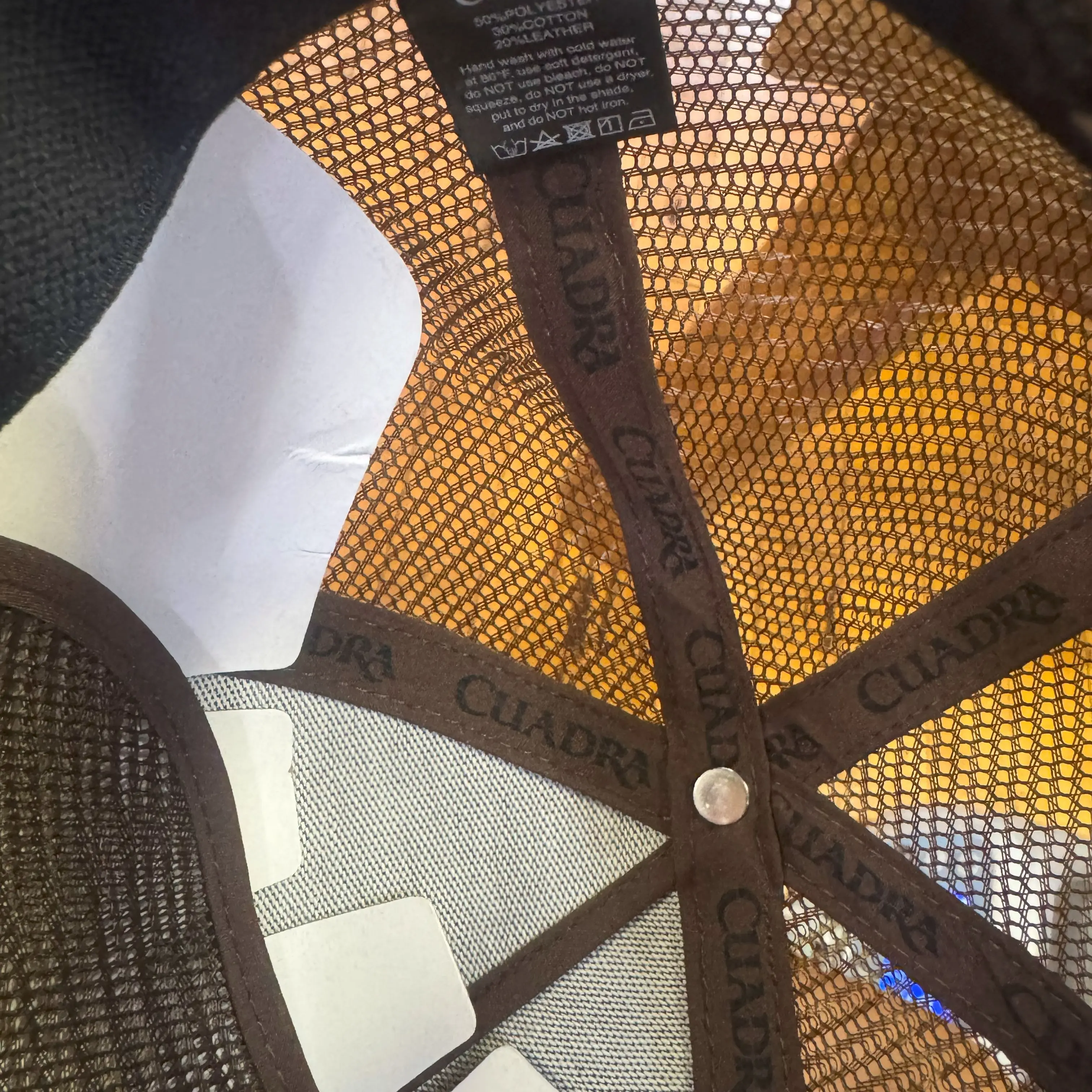 Elevate your style with the Cuadra Snapback Cap. This cap features a brown leather visor and a cotton-polyester blend panel. The Cuadra logo patch on the side subtly brands your taste for quality and style. It's a perfect accessory for those who appreciate fine craftsmanship.